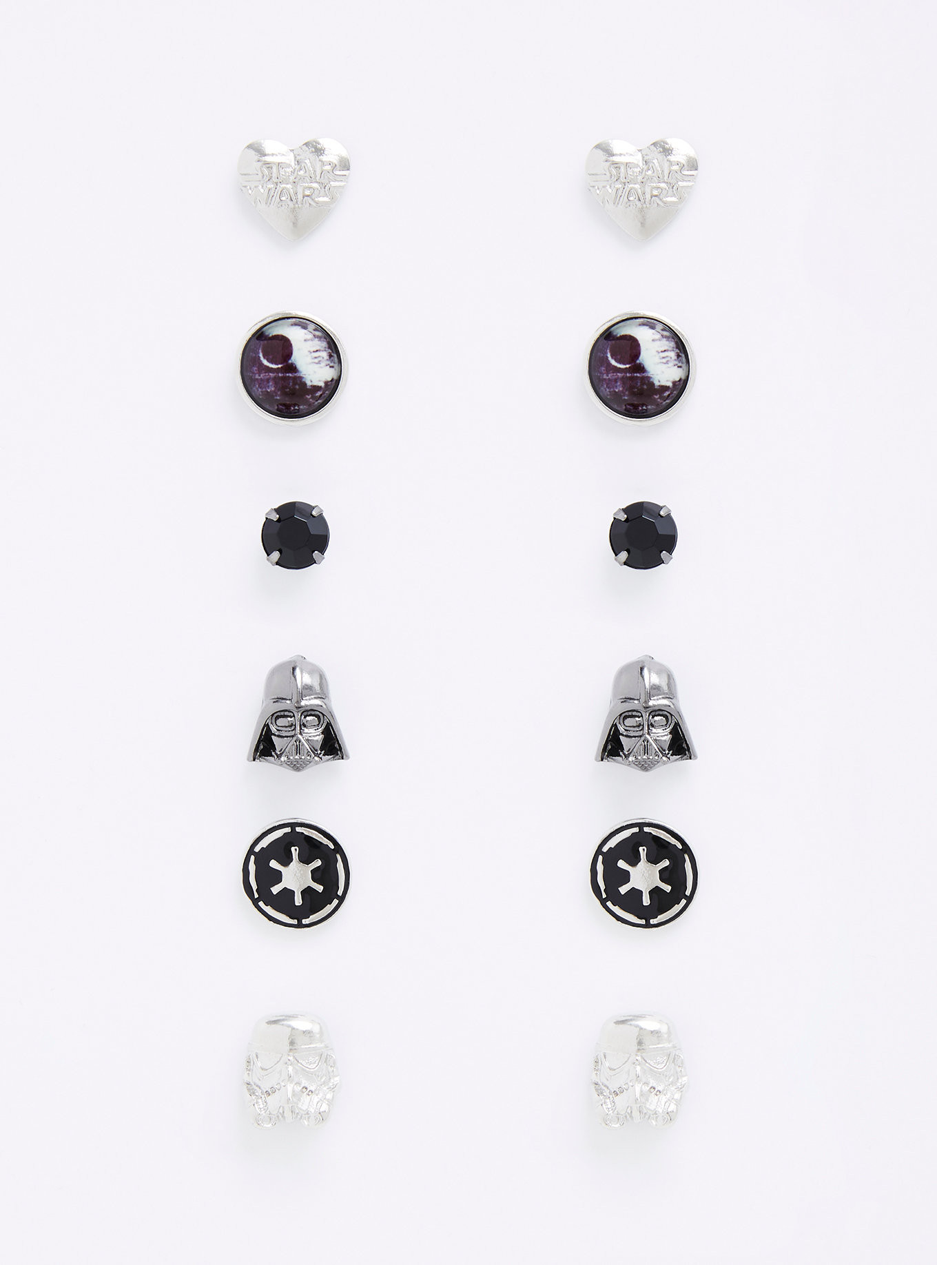 Not feeling the force? This earring set of six will help. The studs are based on a galaxy far, far away, including Death Star studs and Stormtrooper pendants.