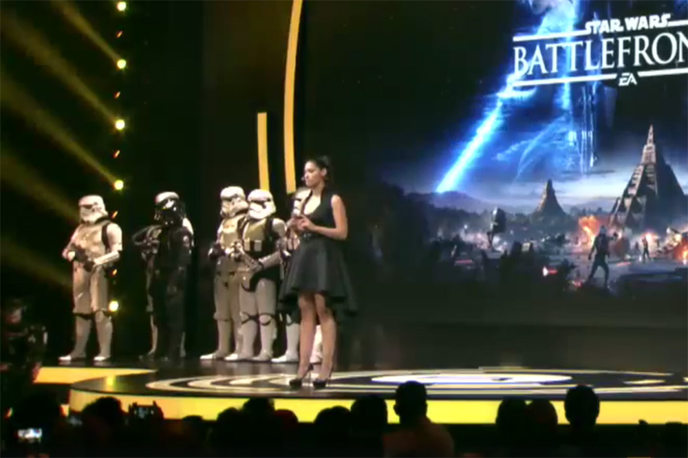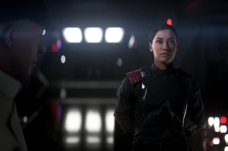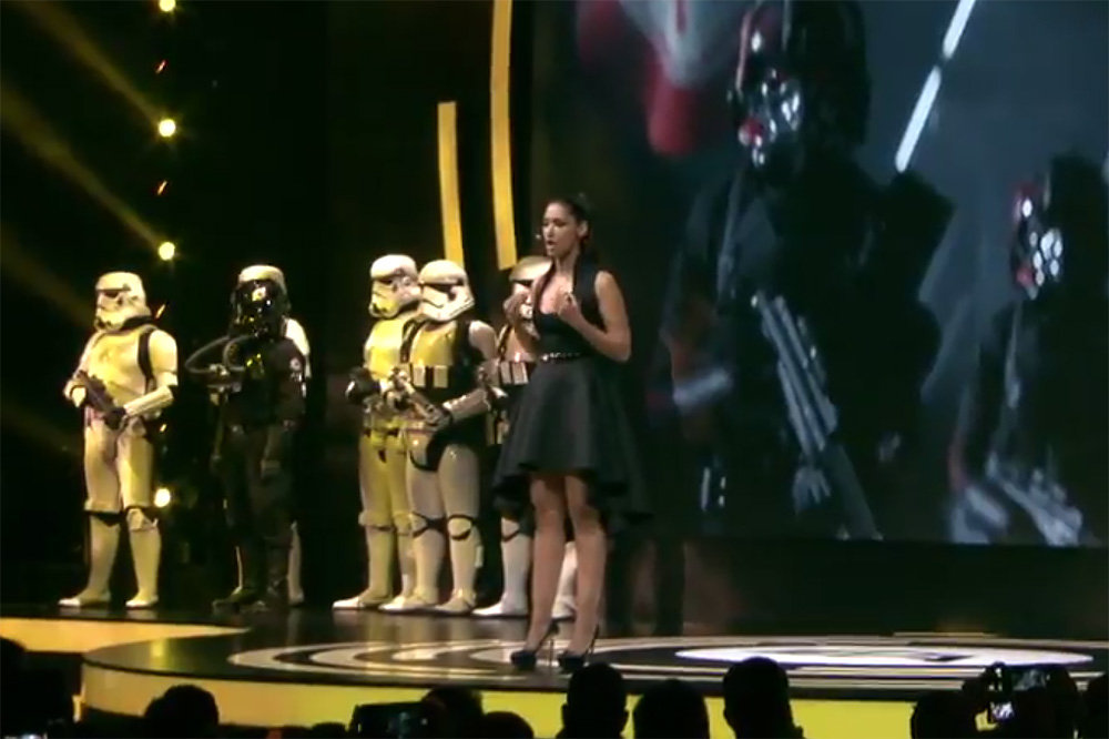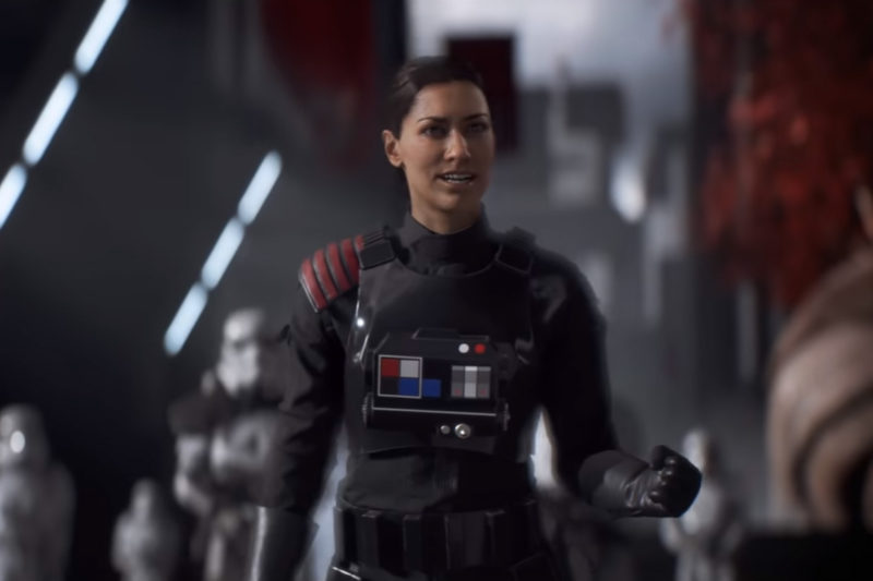 I love Star Wars videogames, so of course I had to get up early to watch the EA Play 2017 livestream, to see the new preview of the Battlefront II ‘Assault On Theed’ gameplay. Actress Janina Gavankar, who plays Inferno Squad Commander Iden Versio, took to the EA Play stage to introduce the game. I was excited to see that her black dress was detailed in an ‘everyday cosplay’ style of her in-game character!