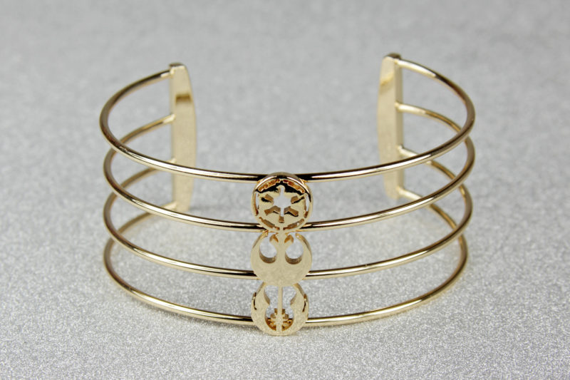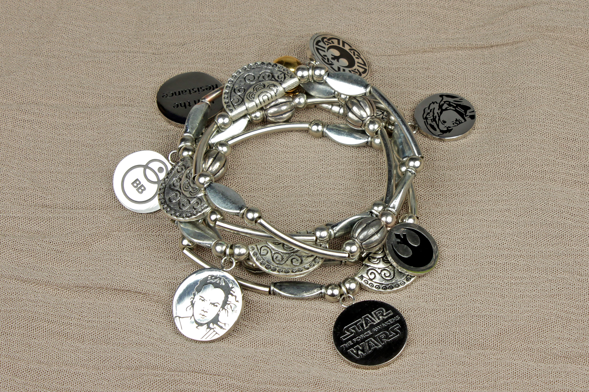 We use stainless steel for our men’s line and for women’s as well. We also use base metal for items that need to come in at a certain price point. We use Swarovski crystals on most of our Star Wars items.