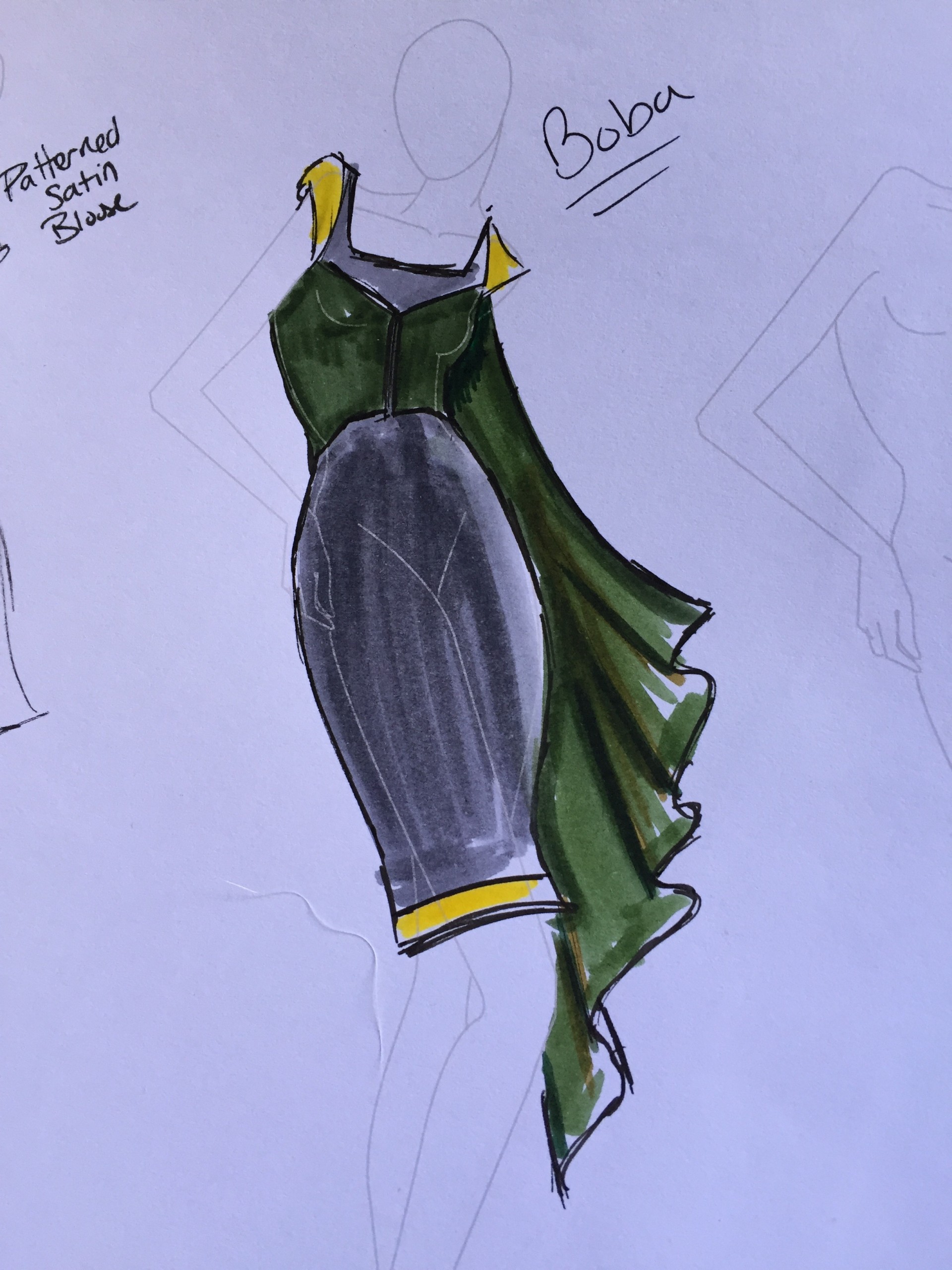 Elhoffer Design - Boba Fett dress concept sketch Elhoffer Design - Boba Fett dress (modelled by Chloe Dykstra)
