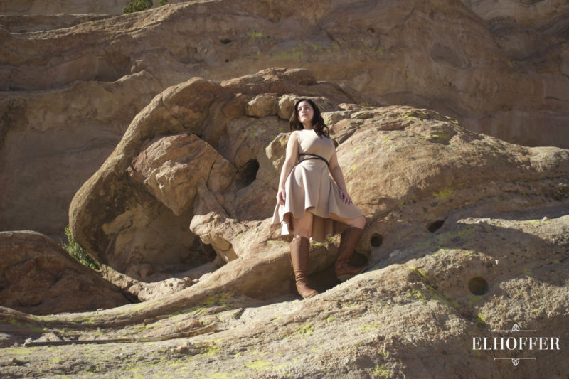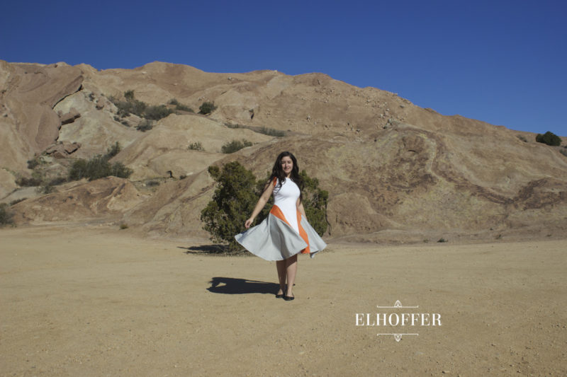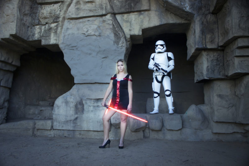 Today’s Mos Eisley Marketplace article features Star Wars fan and geek fashion designer Catherine Elhoffer, of Elhoffer Design. Catherine currently has three Star Wars inspired dresses available on Etsy – the Jedi inspired ‘Galactic Knight’ dress (see our earlier feature here), the Rey inspired ‘Galactic Scavenger’ dress, and the X-Wing pilot inspired ‘Galactic Fighter’ dress. All three are available in sizes XS to 3XL – Elhoffer Design can ship internationally!