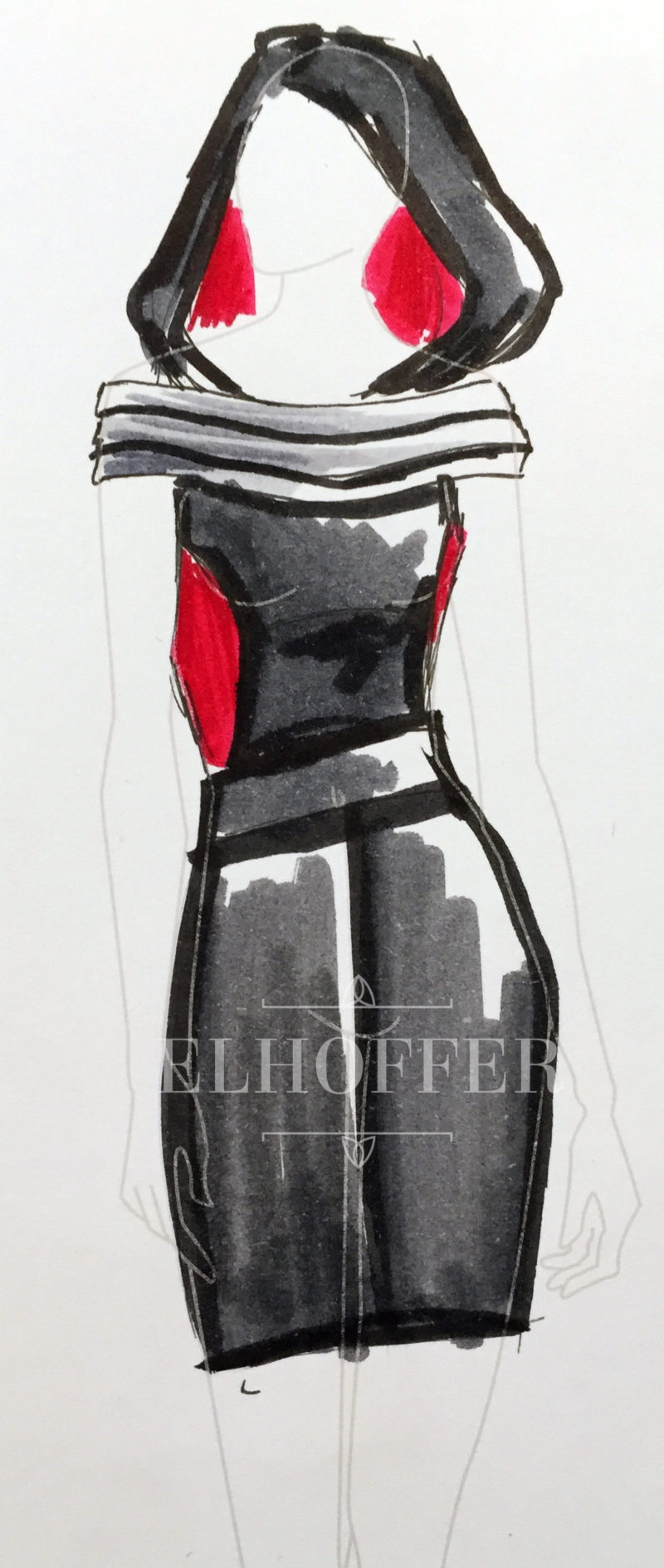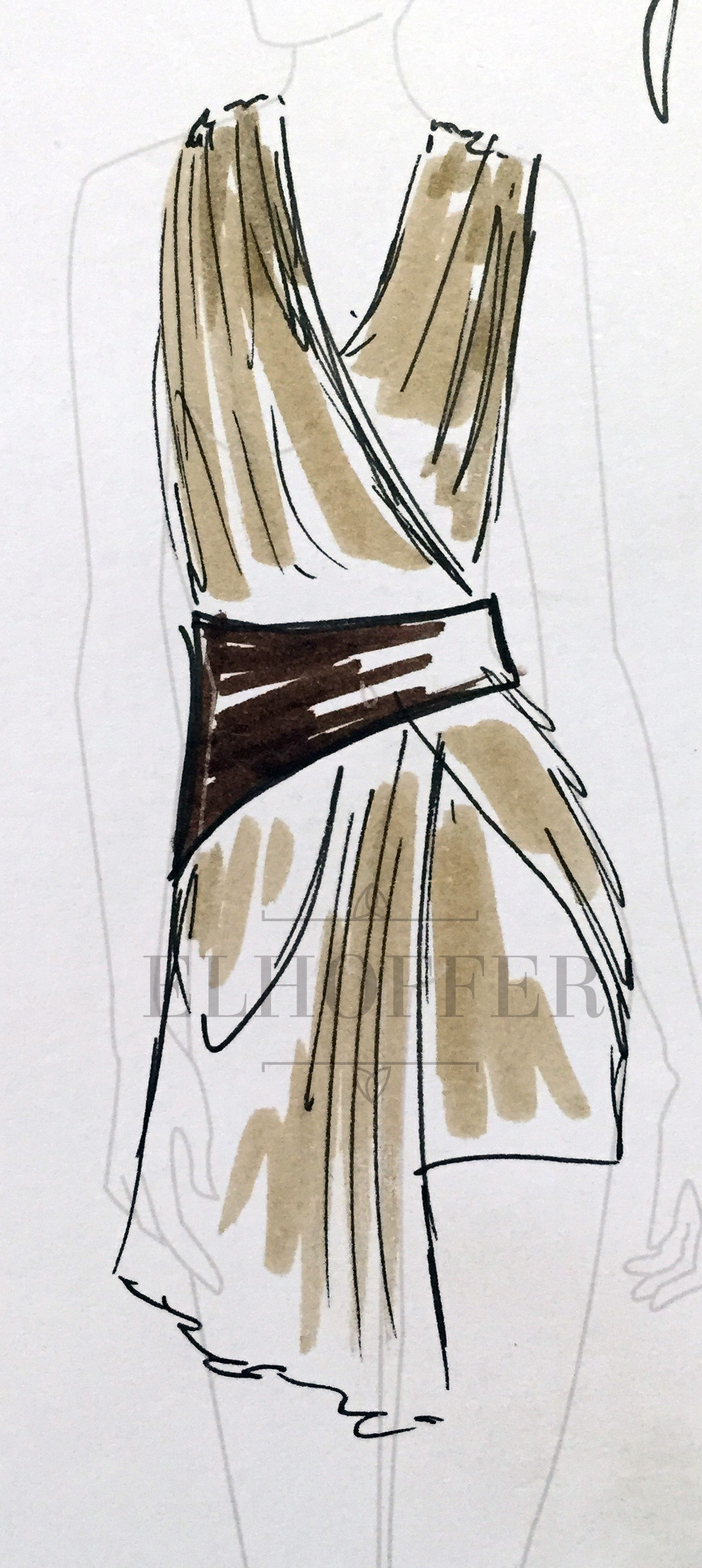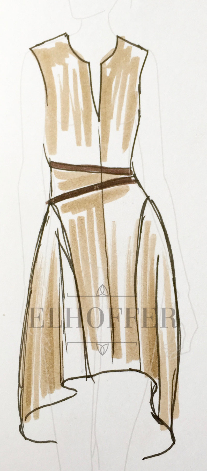 Elhoffer Design - Poe Dameron inspired dress concept sketch Elhoffer Design - Rey inspired dress concept sketch Elhoffer Design - Kylo Ren inspired dress concept sketch Elhoffer Design - BB-8 inspired dress concept sketch