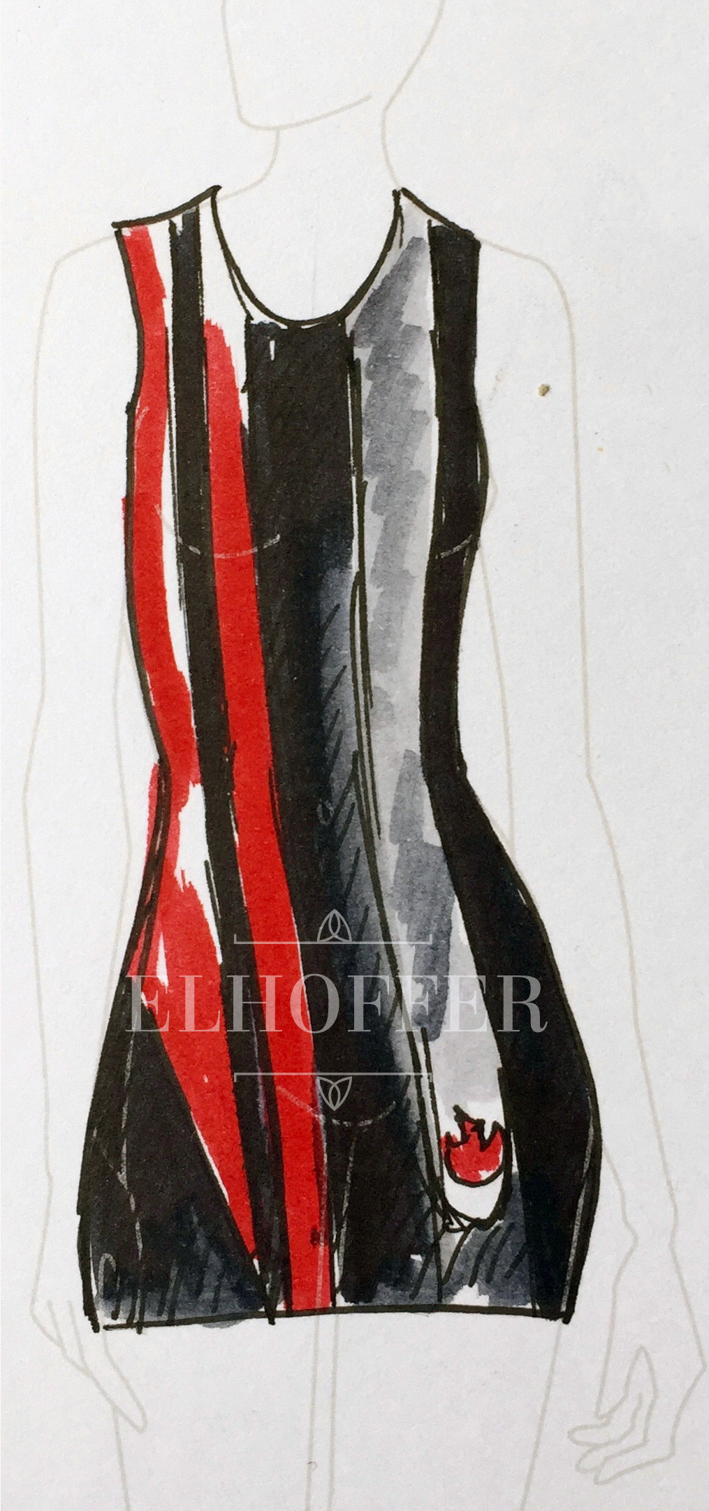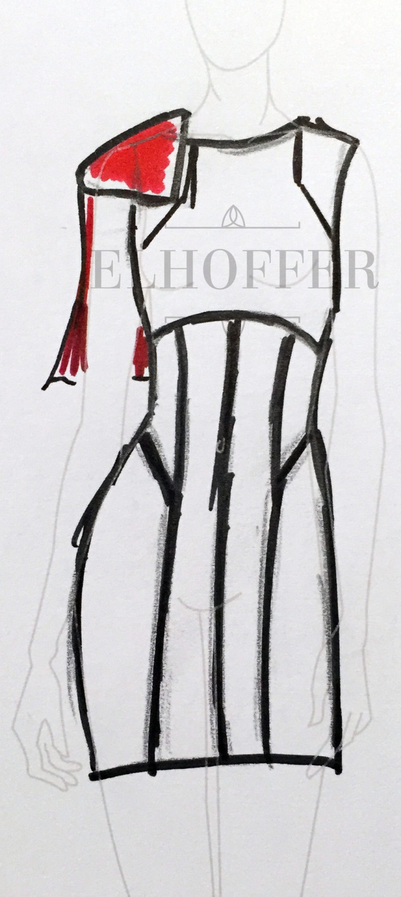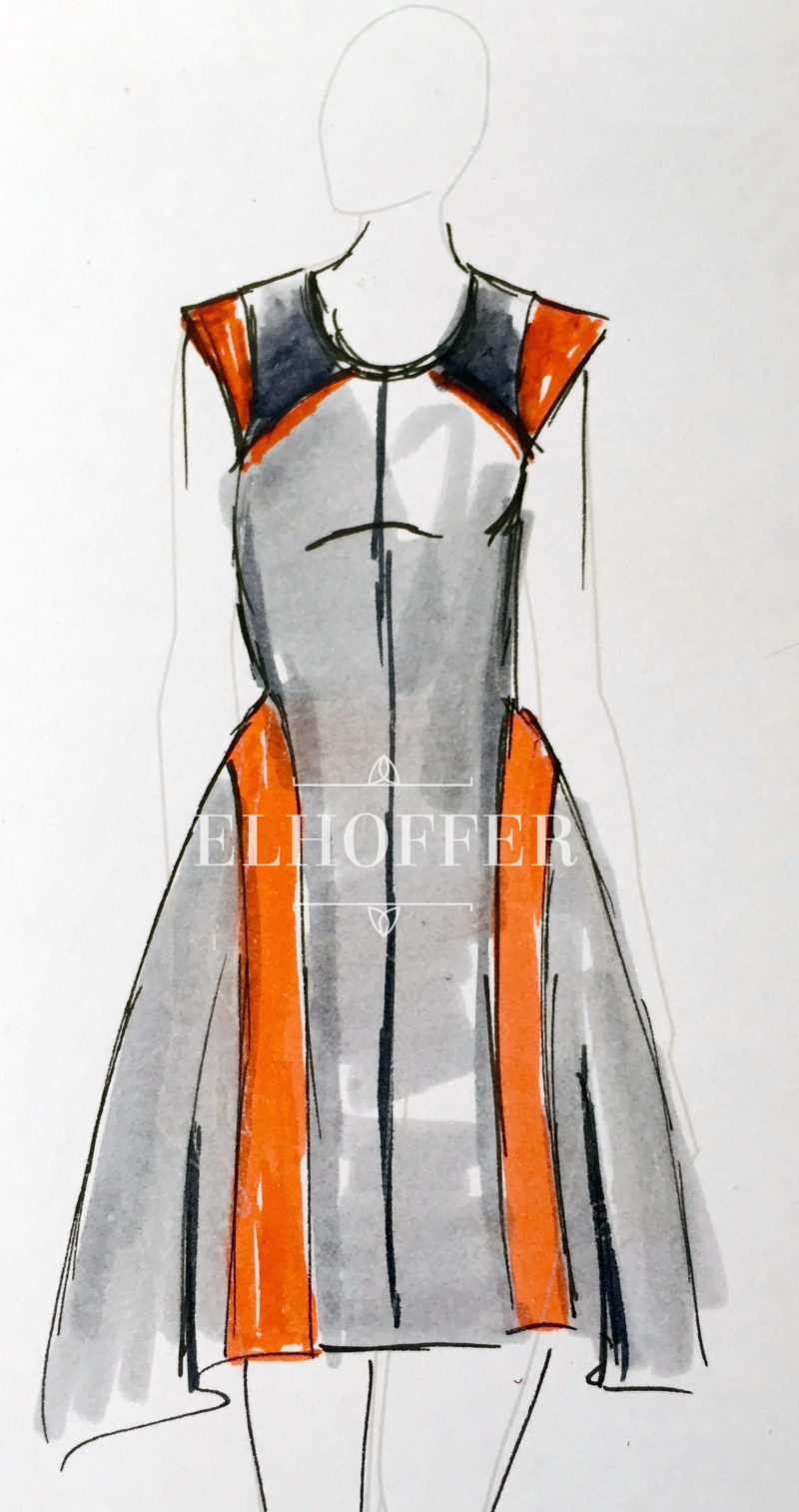 Elhoffer Design - Poe Dameron inspired dress concept sketch Elhoffer Design - Rey inspired dress concept sketch Elhoffer Design - Kylo Ren inspired dress concept sketch Elhoffer Design - BB-8 inspired dress concept sketch