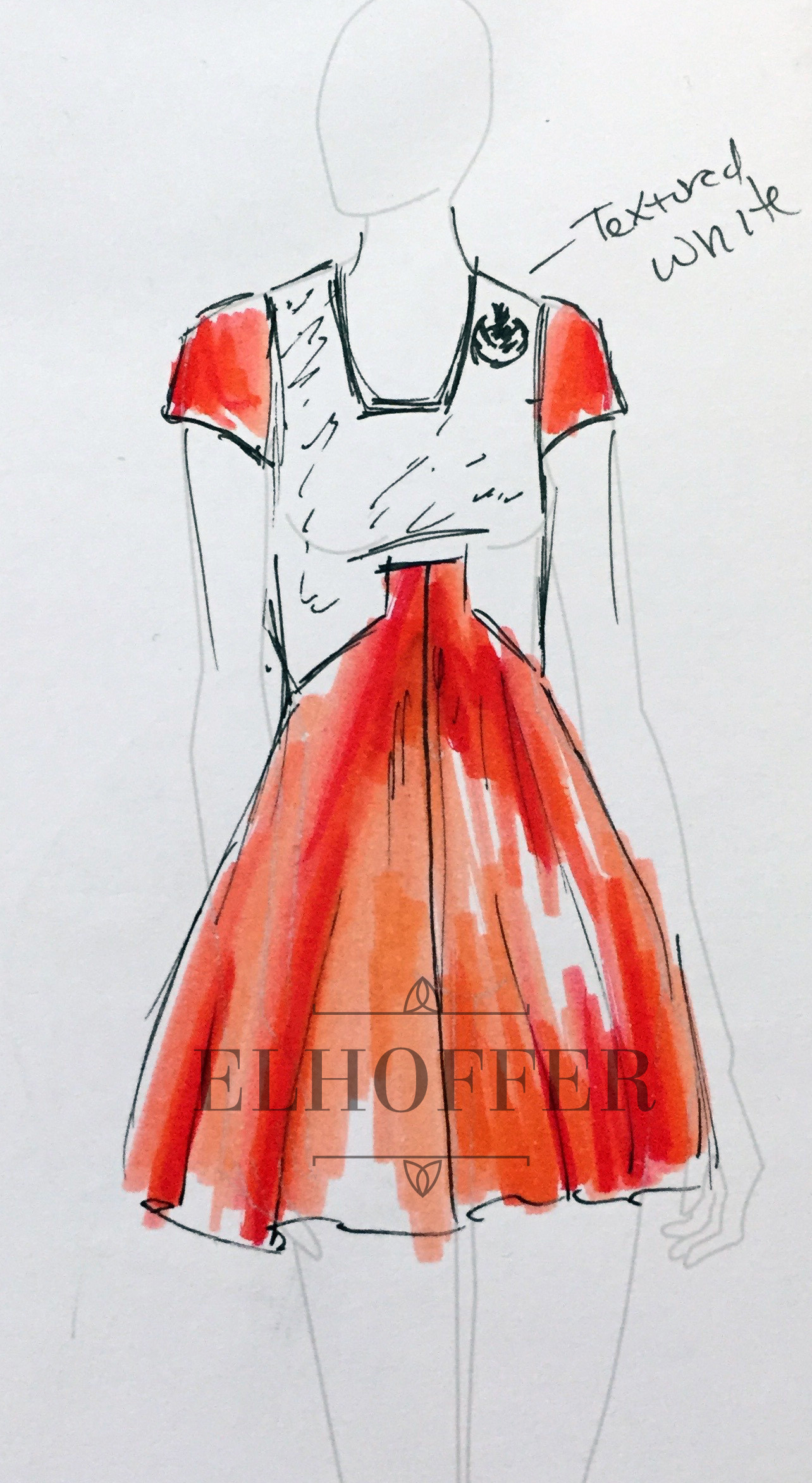 Elhoffer Design - Rey inspired dress concept sketch Elhoffer Design - Kylo Ren inspired dress concept sketch Elhoffer Design - X-Wing pilot inspired dress concept sketch Elhoffer Design - Stormtrooper inspired dress concept sketch