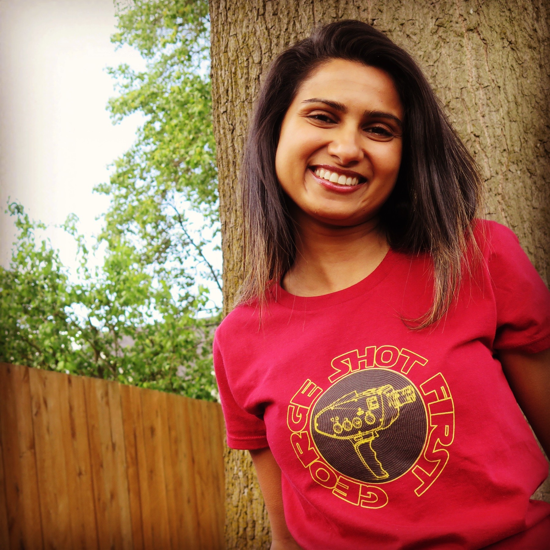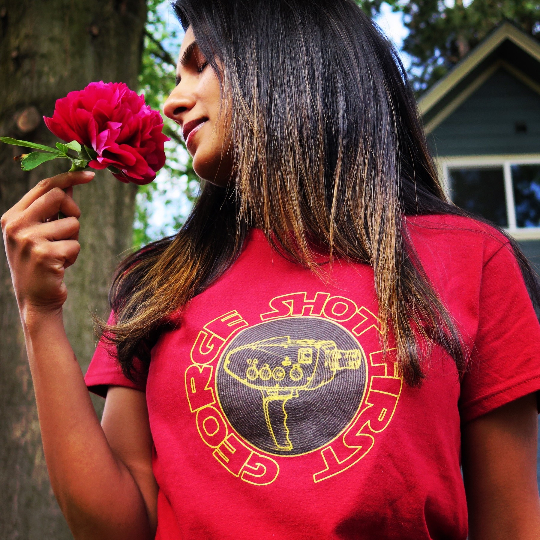 I recently had the incredible opportunity to ask George Shot First co-founder Michael O’Connor a few questions about the geek apparel label, and the inspiration behind the company. I’m always excited to see fans creating Star Wars inspired fashion, and it’s great to see George Lucas celebrated by Star Wars fans with a fun reference to the famous cantina scene. Read on for the full interview – and photos of their women’s ‘Camera Blaster’ tee.