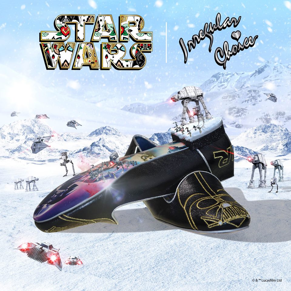 Irregular Choice have revealed the fourth pair in their upcoming women’s Star Wars footwear collection – Darth Vader flats!  These amazing black flats feature Darth Vader’s helmet embroidered on the toe, the Star Wars logo embroidered around the heel, plus a fantastic image printed on the sole! I can’t wait for the next reveal 🙂 You can read the press release announcing the collection here – the collection is planned for release on October 30th! You can see all the previously revealed shoes here.