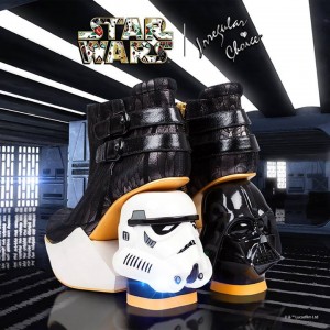 Irregular Choice have revealed the fifth pair in their upcoming women’s Star Wars footwear collection – sculpted heel boots! I remember these ones on display at Celebration Anaheim, and were one of my instant favourites – love the Darth Vader and Stormtrooper sculpted heels! You can read the press release announcing the collection here – the collection is planned for release on October 30th! Fans in London can attend the launch event in person – read more about the event details here. It’s not long now until all 14 styles are released and available to buy – I’m still trying to decide which pair is my favourite! You can see all the previously revealed shoes here.