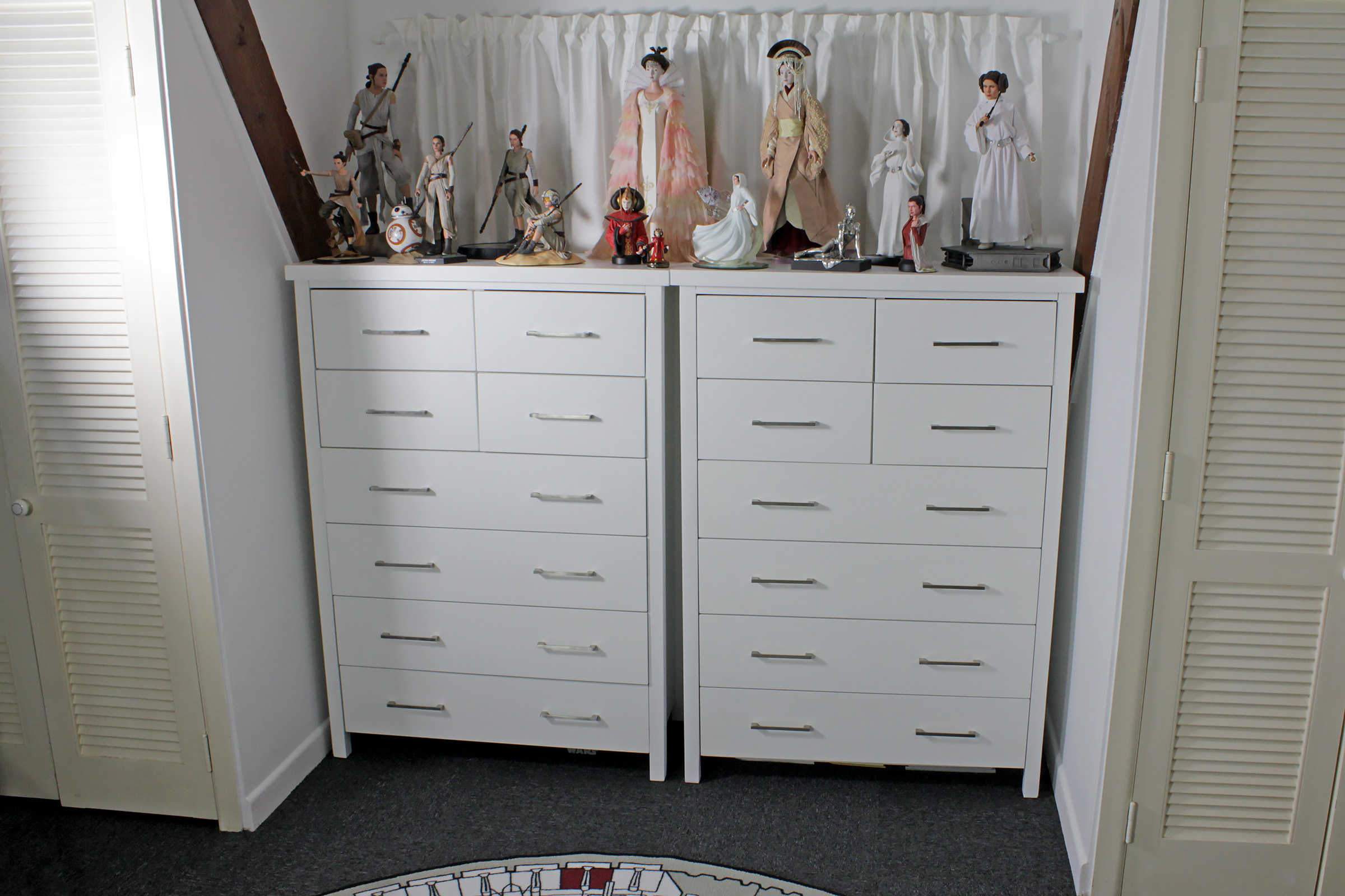 One bonus from these drawers is that I have a lovely Star Wars collectible space! The sturdy drawers are perfect for displaying some of my favourite larger-scale collectibles of the women of the Star Wars saga – Princess Leia, Padme’ Amidala, and Rey. This includes pieces from Sideshow Collectibles, Hot Toys, Gentle Giant, Royal Selangor, Limoges, Kotobukiya, Robert Tonner, Bradford Exchange, and Lladró. Now I can enjoy this beautiful display everyday.