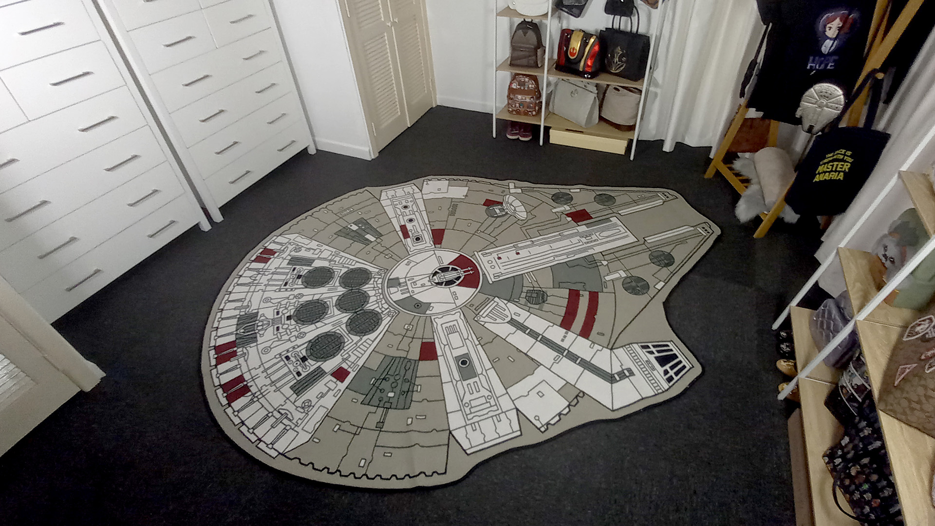 A new addition to the room – this fantastic Millennium Falcon rug. As this is my Kessel Runway room, it had to have a big Millennium Falcon somewhere, and this rug fits the space so well.