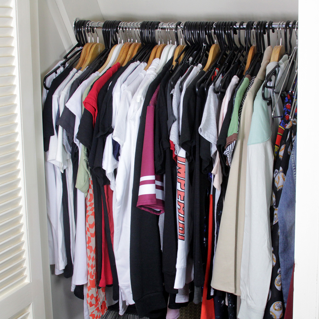 The two built-in wardrobes didn’t change much during the reorganisation, just a little bit of sorting – shirts and tops in one, jackets and dresses in the other. I still hope to swap out all the plastic hangers for wooden ones to better protect my clothes, but for now, it’s nice to have these spaces to store my favourite pieces.