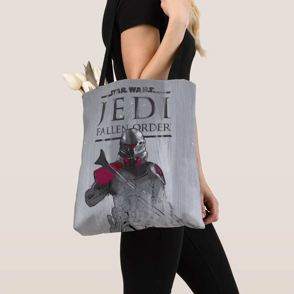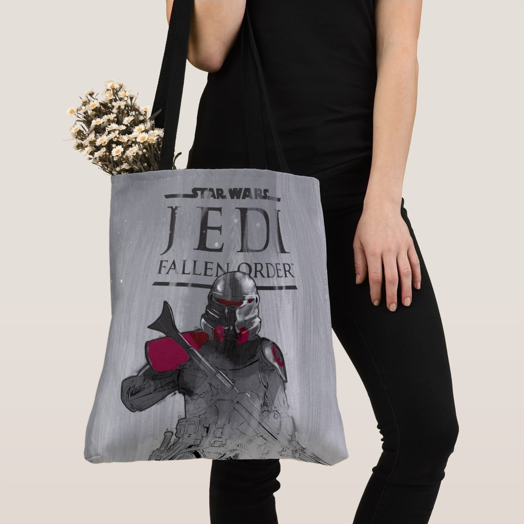 This Star Wars Jedi Fallen Order tote bag is available from Shop Disney. The tote bag features an all-over print of the new Imperial Purge Trooper, from the upcoming video game Jedi Fallen Order.