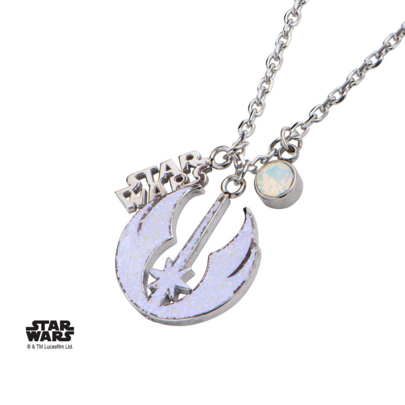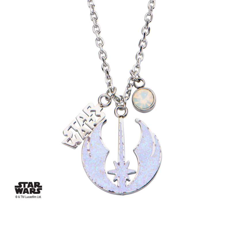A new women’s Star Wars necklace has been added to the Body Vibe wholesale website. The necklace is made from stainless steel, and features a pendant of the Jedi Order symbol, with a glitter inset, with two smaller pendants – a cut-out Star Wars logo pendant, and a rhinestone pendant. I think the design is really pretty – I would love to see this necklace in person! As Body Vibe’s website is wholesale only and doesn’t sell to the public, I’m keeping an eye out for when this necklace shows up at stockists.