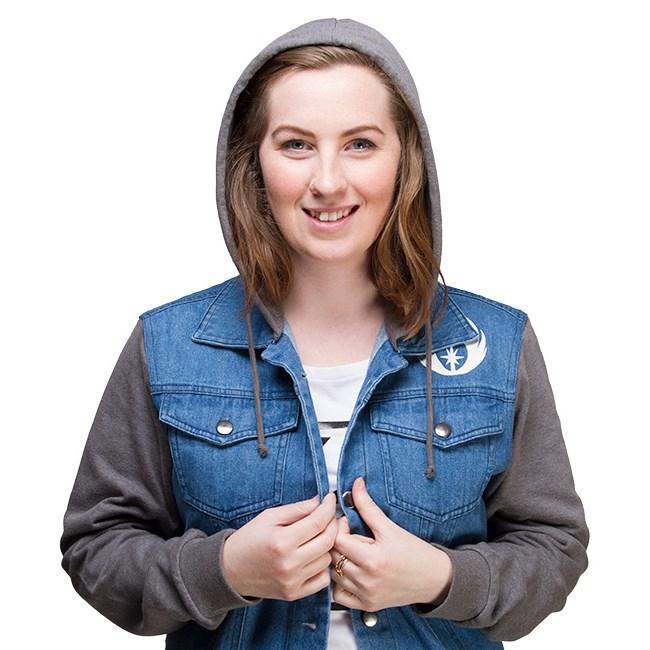 Thinkgeek has a new women’s Star Wars jacket available. Exclusive to Thinkgeek, the button up denim jacket features the Jedi Order logo printed in white on the front and back – the back print also features the text ‘Jedi Training Academy’. The main body of the jacket is made from blue denim, while the sleeves and drawstring hood are made from a contrasting grey french terry fabric. Available in sizes S to 3X, the jacket is priced at US$59.99 each – Thinkgeek can ship internationally.