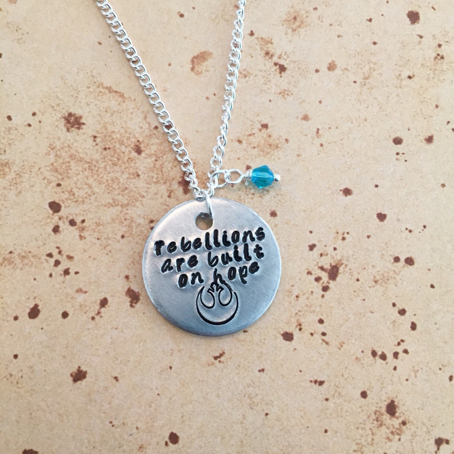 - Rebellions Are Built On Hope stamped charm necklace – US$15.96 each