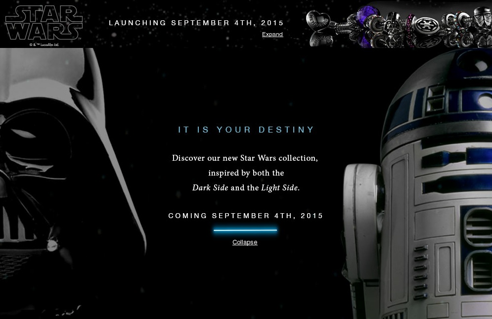 Force Friday is rapidly approaching and it’s getting hard to plan – and budget – for all the shopping, as stores have to keep quiet about their ‘The Force Awakens’ products until release day. Compared to toy collecting, Star Wars fashion for women is a relatively small section of Star Wars merchandise – and while it has indeed been steadily growing over the past few years, it’s hard to tell just how much of the new ‘Force Friday’ offerings will include fashion for women. It can be difficult at times, trying to keep up with it all while being located outside the US – from stores not shipping internationally, to simply not knowing about certain stores/brands. A new discovery for me has been Kay Jewelers, which has teased a new Star Wars jewelry collection launching for Force Friday. The image below has been posted to their website, which shows a dark toned charm bracelet with Star Wars elements! I’m personally not familiar with their products or reputation, so I’m interested to find out more.