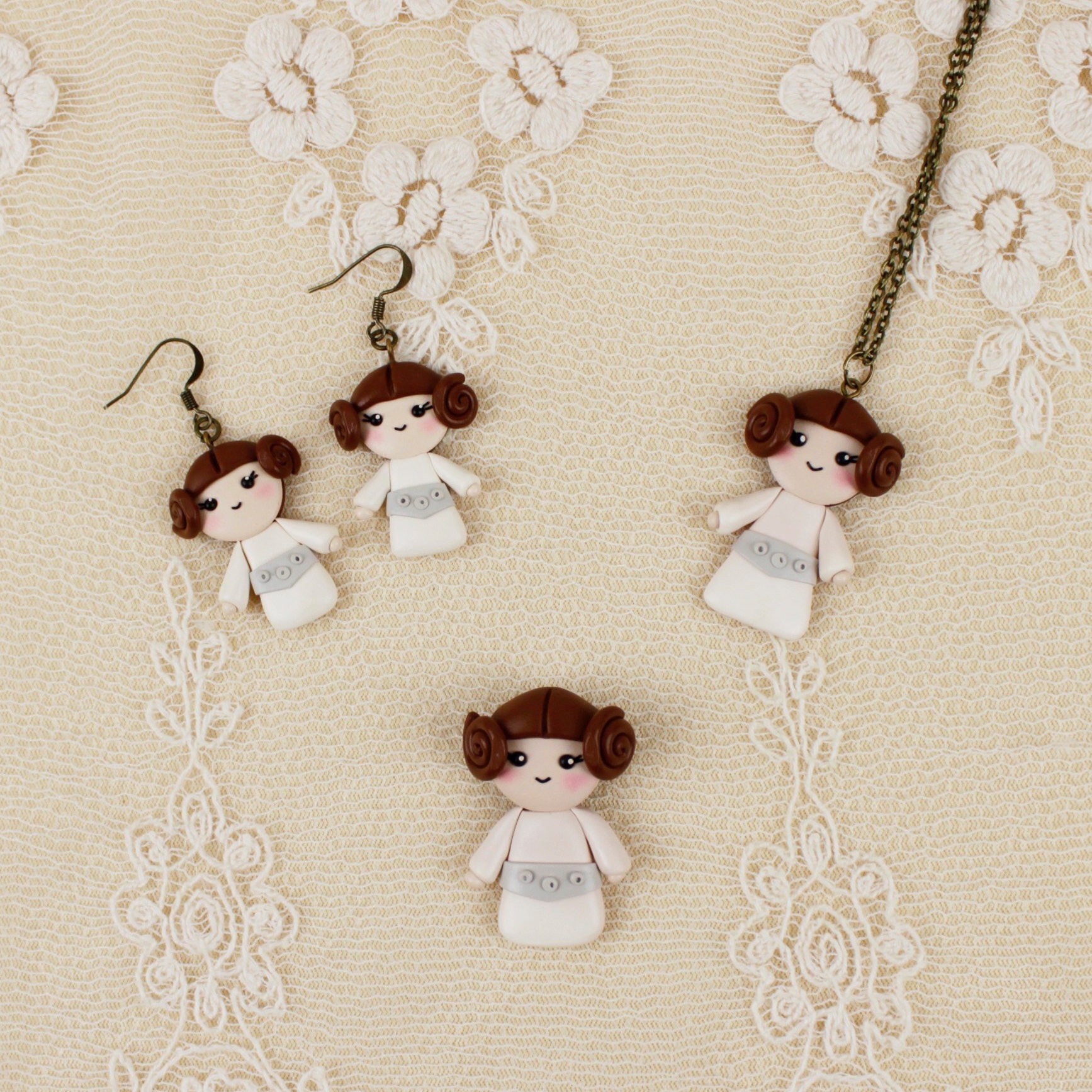 - Princess Leia Earrings or Necklace – US$14.00 to US$16.00 each (Etsy)