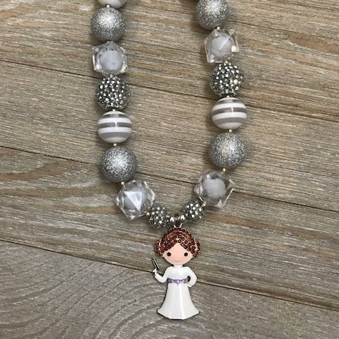- Princess Leia with Blaster Gumball Bead Necklace – US$13.50 each (Etsy)