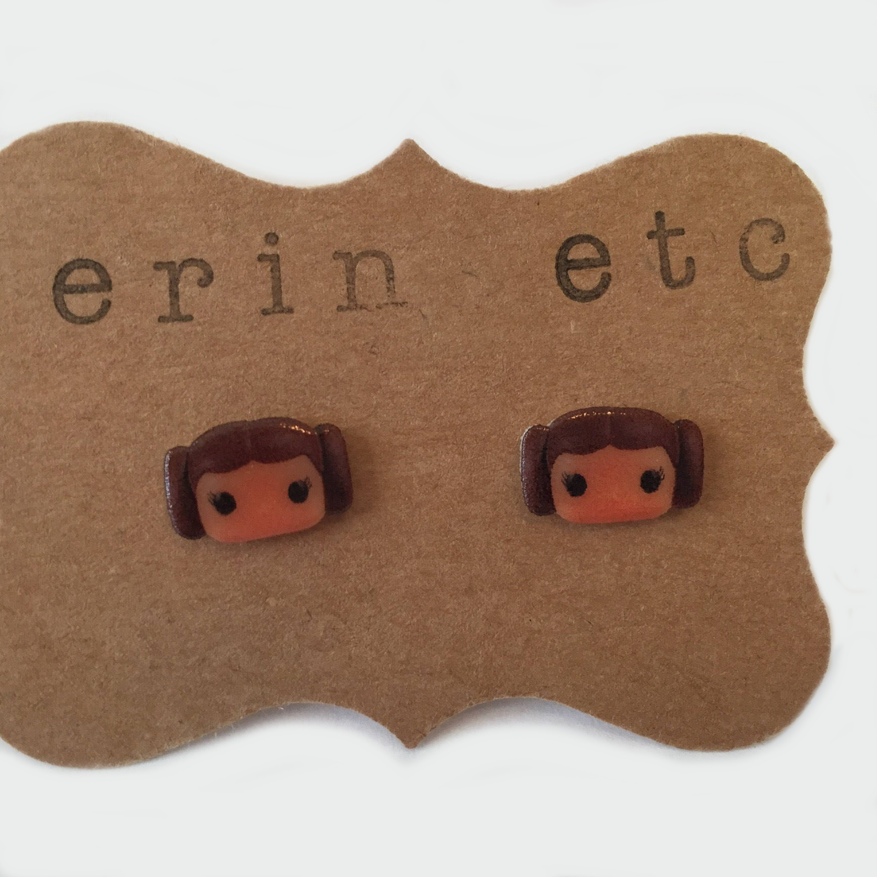 - Star Wars Princess Leia Stud Earrings – US$12.00 per pair (Etsy)