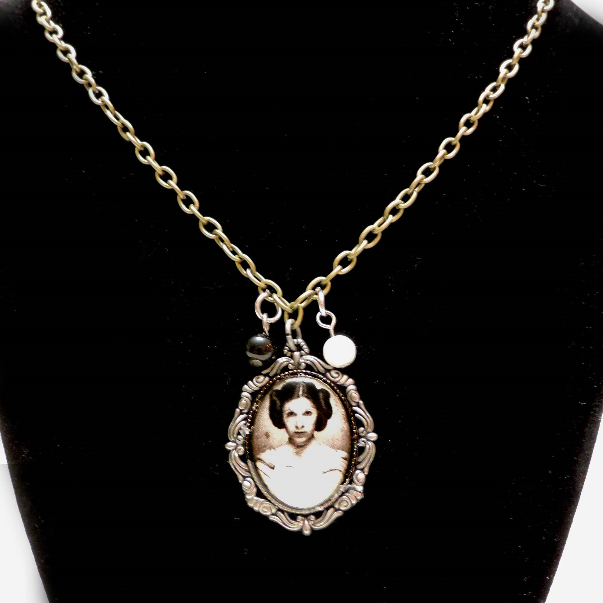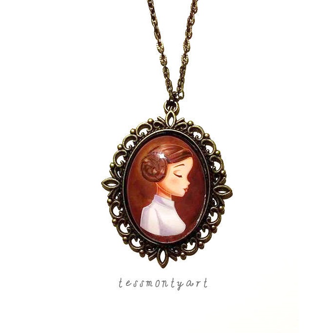 - Princess Leia Portrait Necklace – US$12.99 each (Etsy)