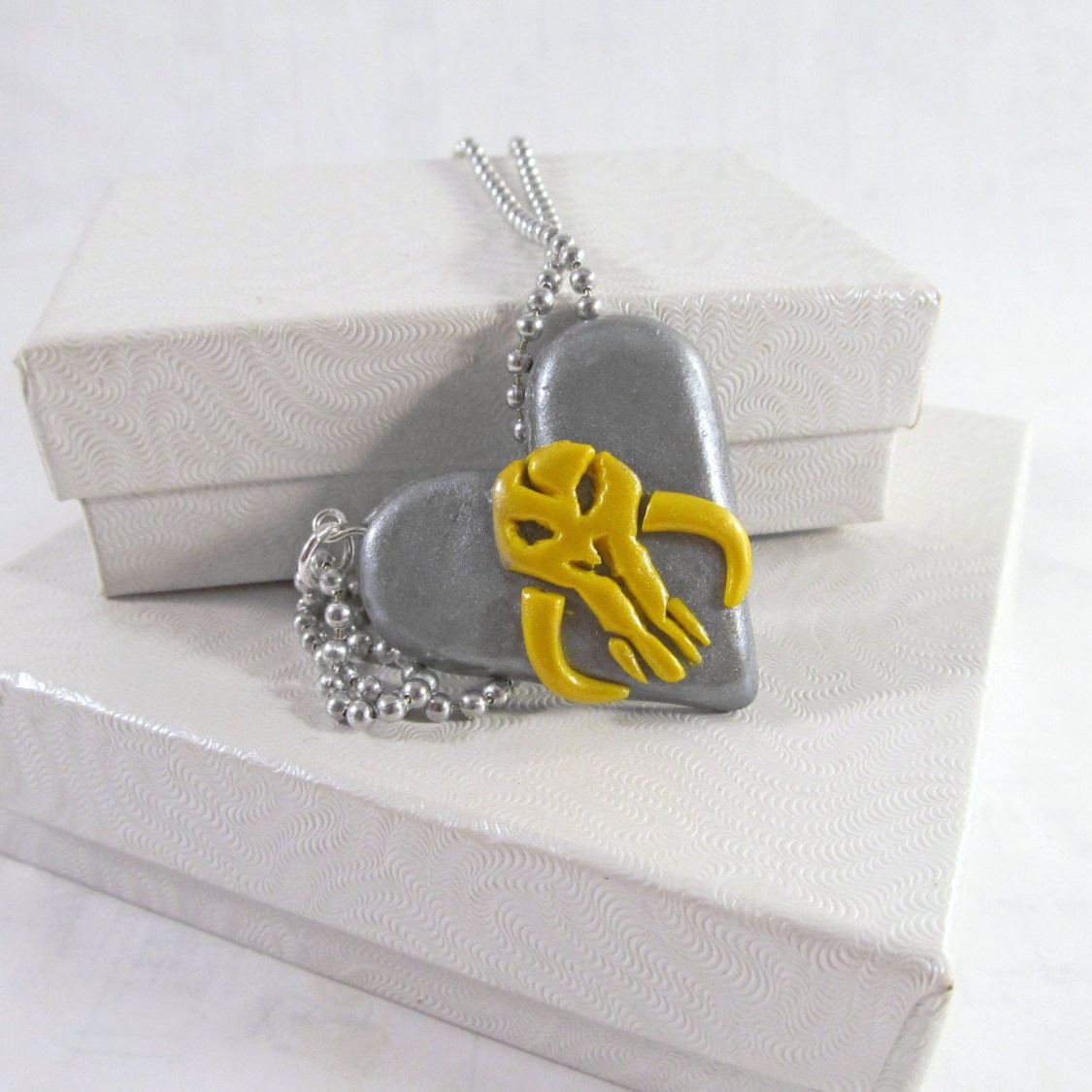 - Mandalorian Symbol Heart Necklace – US$22.00 each (Miss E’s/Etsy)