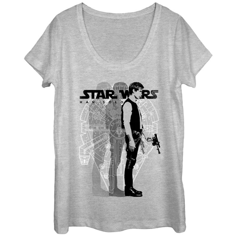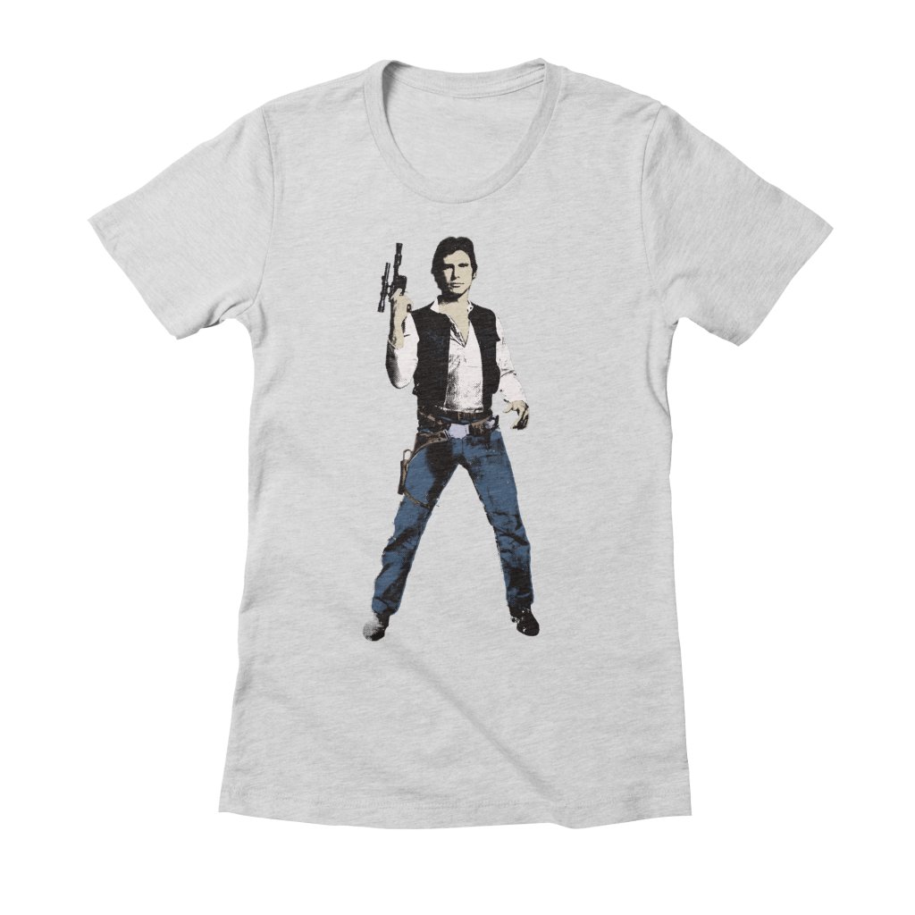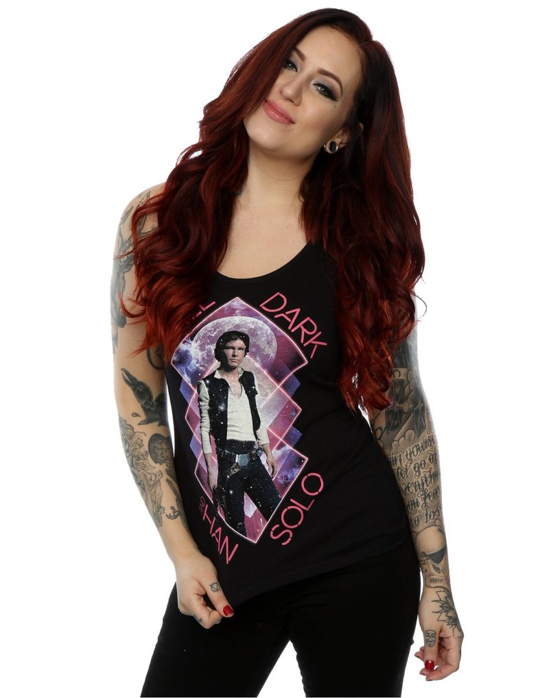 Welcome to this week’s “Leia’s List”. Each week we round up our favourite fashion items for a particular theme – today’s theme is women’s Han Solo printed tops. With the long-awaited Solo – A Star Wars Story trailer only days away, now is the perfect time to celebrate Han Solo. While most of the time he tends to be featured alongside other characters (or part of a ‘I Love You’ – ‘I Know’ design) on apparel, it’s great to see designs that celebrate the one and only Han Solo.