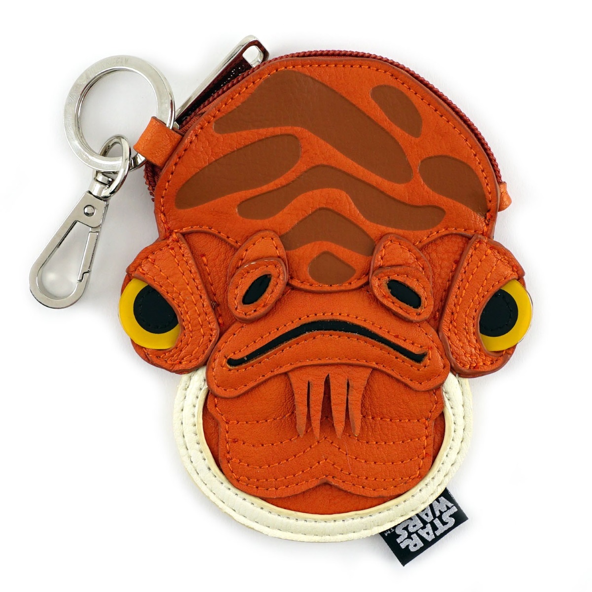 This Admiral Ackbar faux leather coin purse is now available from Loungefly. Made from orange faux leather, the coin purse features the face of the famous Mon Calamari, with embossed and applique details. The back of the coin purse features a metal Loungefly x Star Wars logo plaque, and the top of purse also has a metal clip, so you can attach it to a zipper pull or key chain etc.