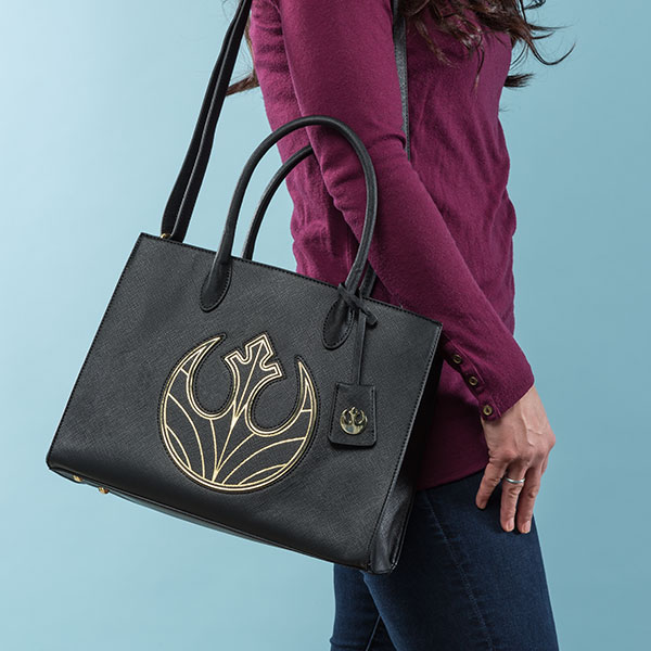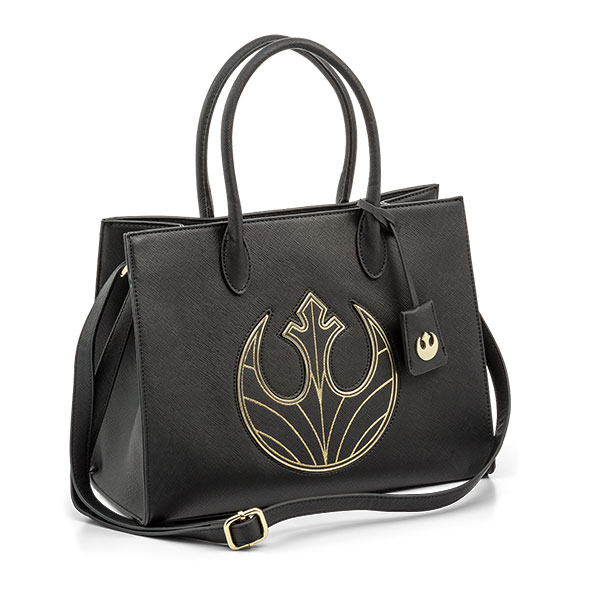 This gorgeous Loungefly x Star Wars The Last Jedi Canto Bight tote bag is now available at ThinkGeek. Made from black faux leather, the handbag features a gold Resistance ‘starbird’ symbol on the front. The bag has carry handles and an adjustable shoulder strap, while the interior lining fabric features a repeating X-Wing Fighter print.
