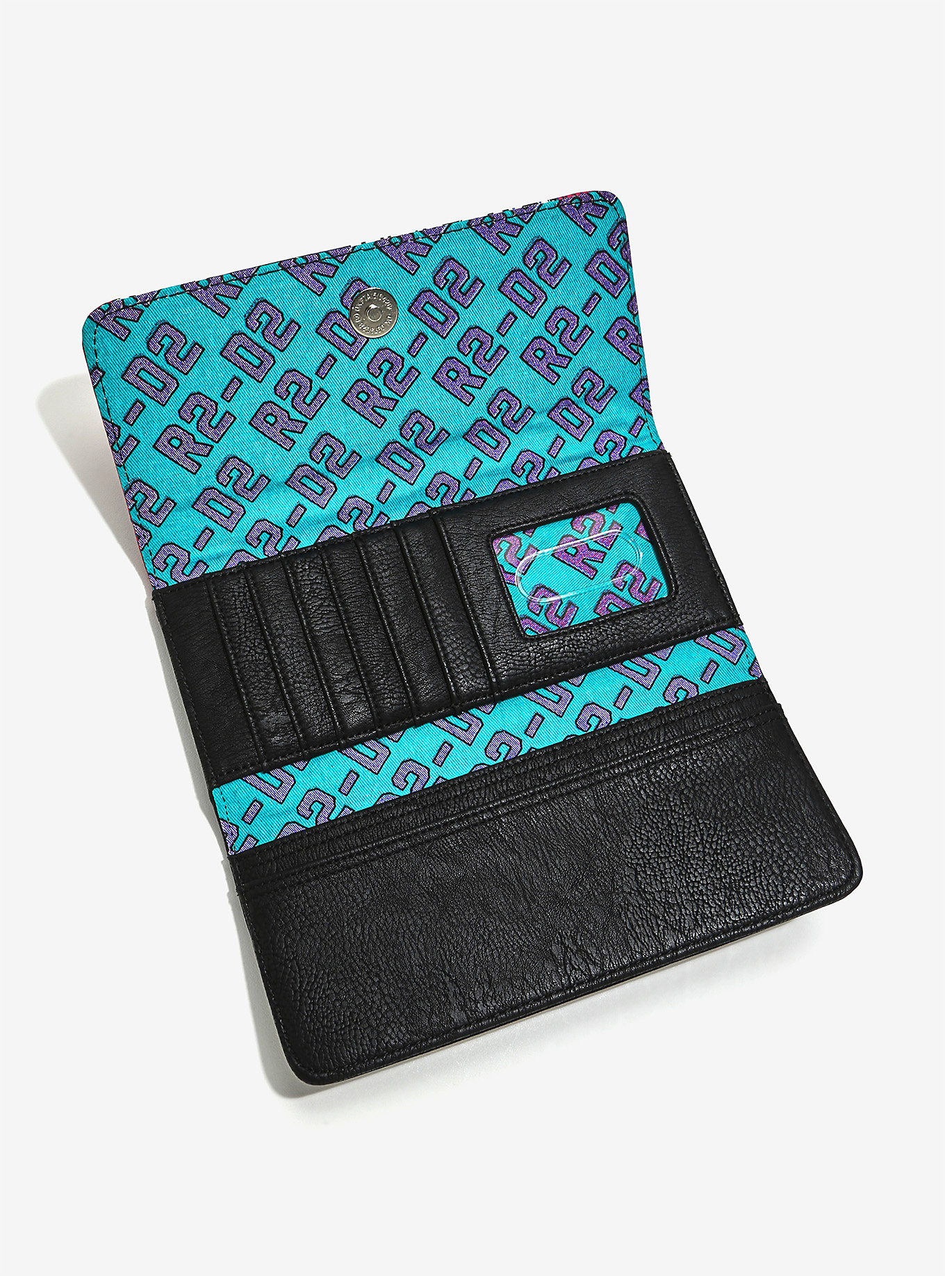 Beep! Beep! The outside of this wallet features a comic print of beloved droid, R2-D2, and the inside has R2-D2 printed lining.