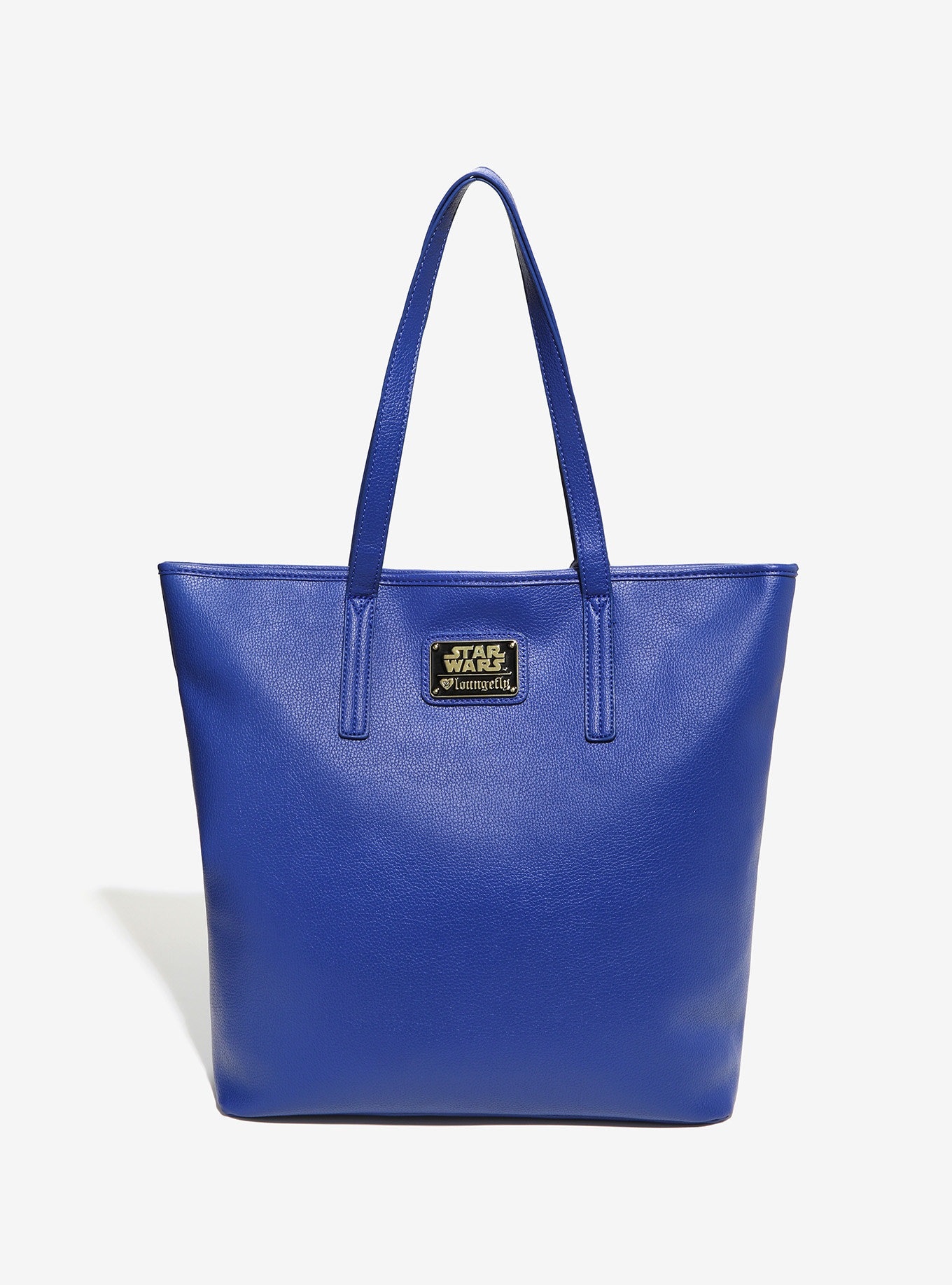 This fabulous Loungefly x Star Wars R2-D2 tote bag is currently half price at Box Lunch! Made from blue faux leather, the tote bag features a ‘debossed’ design of R2-D2 on the front, and a gold faux leather tag of C-3PO. The inside is lined with black lining fabric with a repeating print of R2-D2 – so cute!