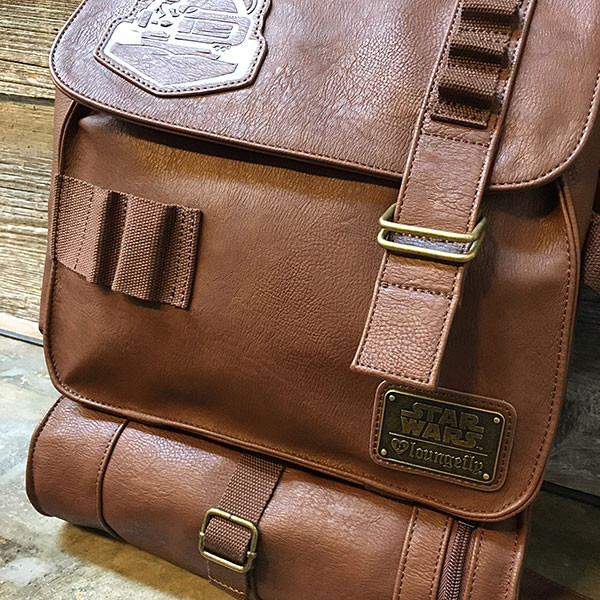 The Loungefly x Star Wars Rey backpack is now available at Thinkgeek! Exclusive to Gamestop and Thinkgeek, the backpack is made from brown faux leather, and is designed to look just like Rey’s bag from The Force Awakens. Real world touches include the embossed patch of Rey on her speeder, the metal Loungefly x Star Wars logo plaque, and lots of useful pockets.