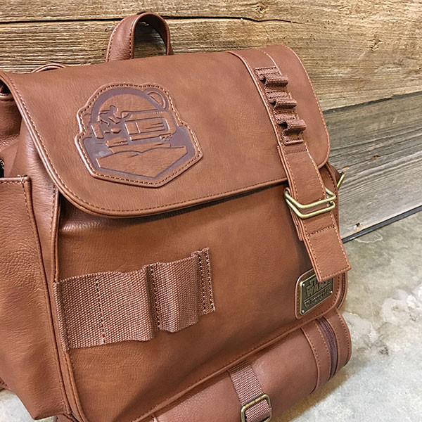 This Star Wars Rey’s Backpack is one of our favorite combinations – a functional piece to add to your wardrobe that doubles as a cosplay. This faux leather backpack is modeled after the one we see Rey wearing in Star Wars: The Force Awakens. It features adjustable straps, a magnetic snap closure on the flap, and side pockets with webbing for any canisters or other assorted salvage you may need to carry.