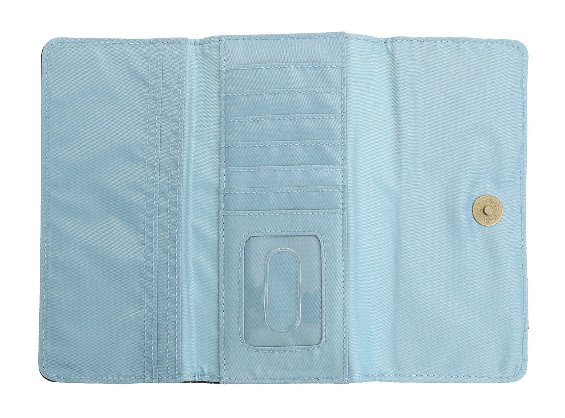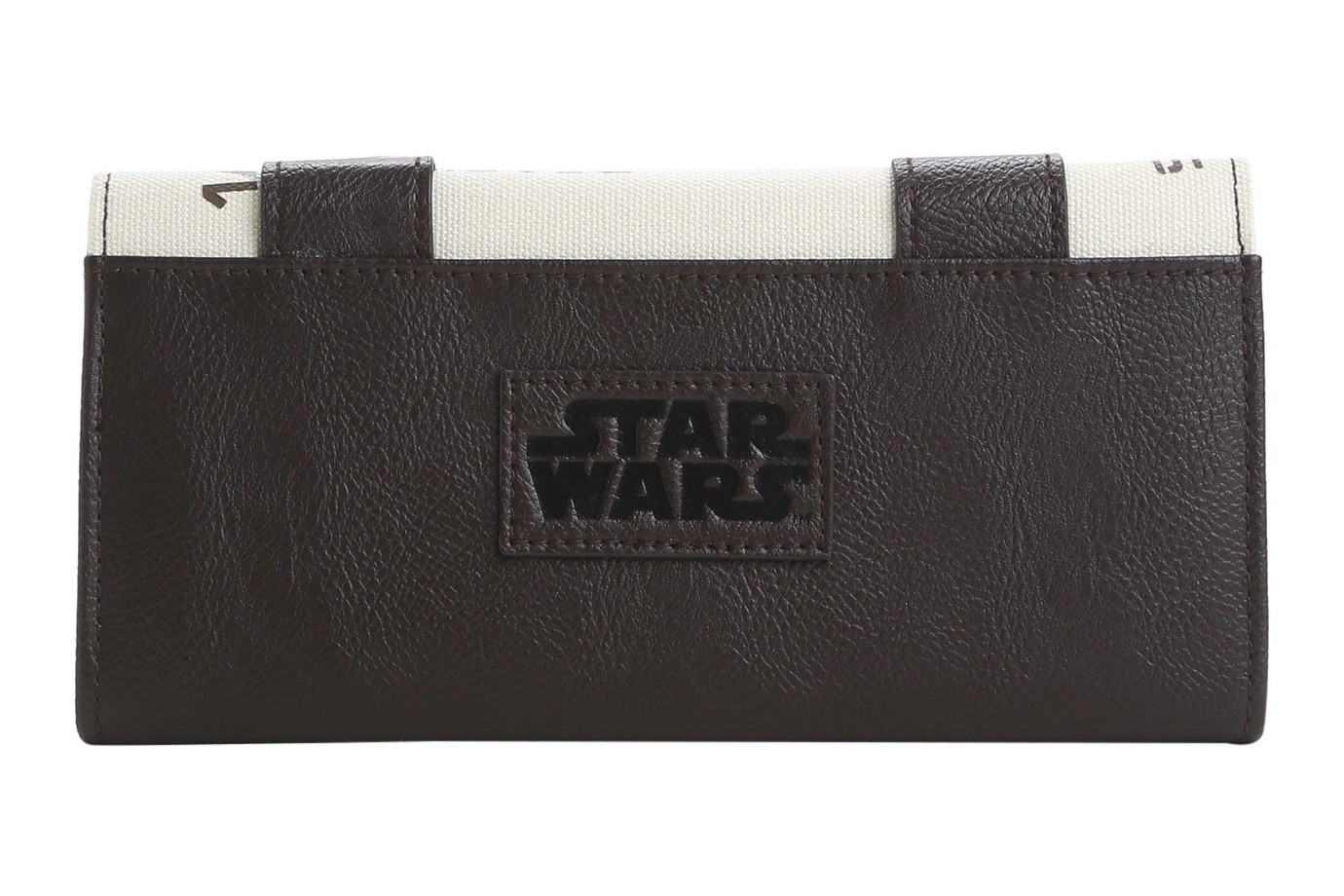 Faux leather & canvas flap wallet from Loungefly with a Rogue One: A Star Wars Story themed design featuring embroidered patch details. Interior includes card slots, clear ID display and billfold. Snap button closure.