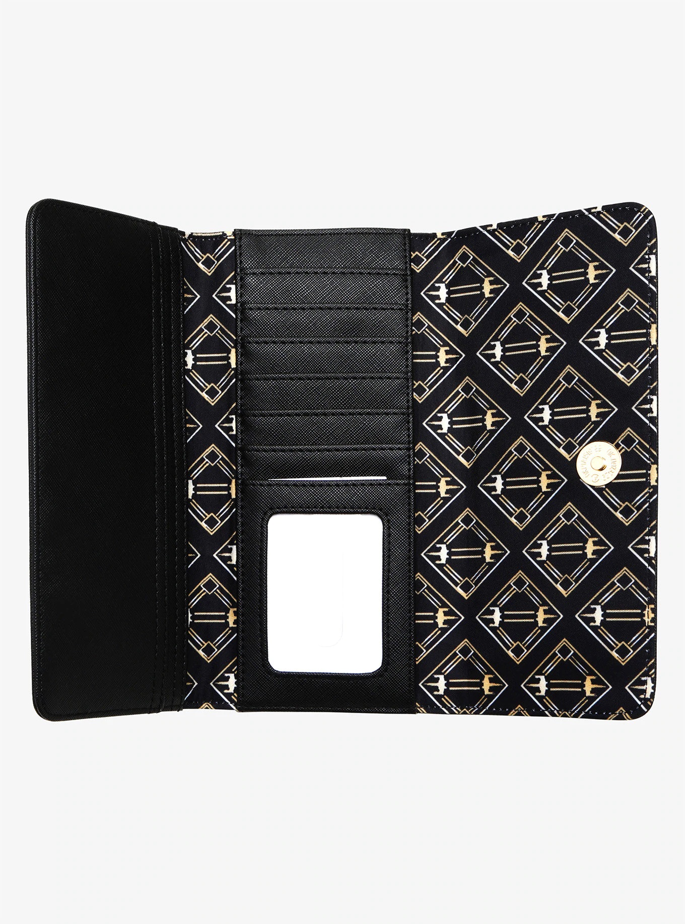 This new Star Wars The Last Jedi handbag is available exclusively at Box Lunch. The black faux leather handbag features the text ‘Rule The Galaxy’ in a gold-colour plaque on the front, while the interior features art deco-style X-Wing printed fabric. The matching wallet also features the gold-tone text plaque on the front, and the same printed lining fabric inside.