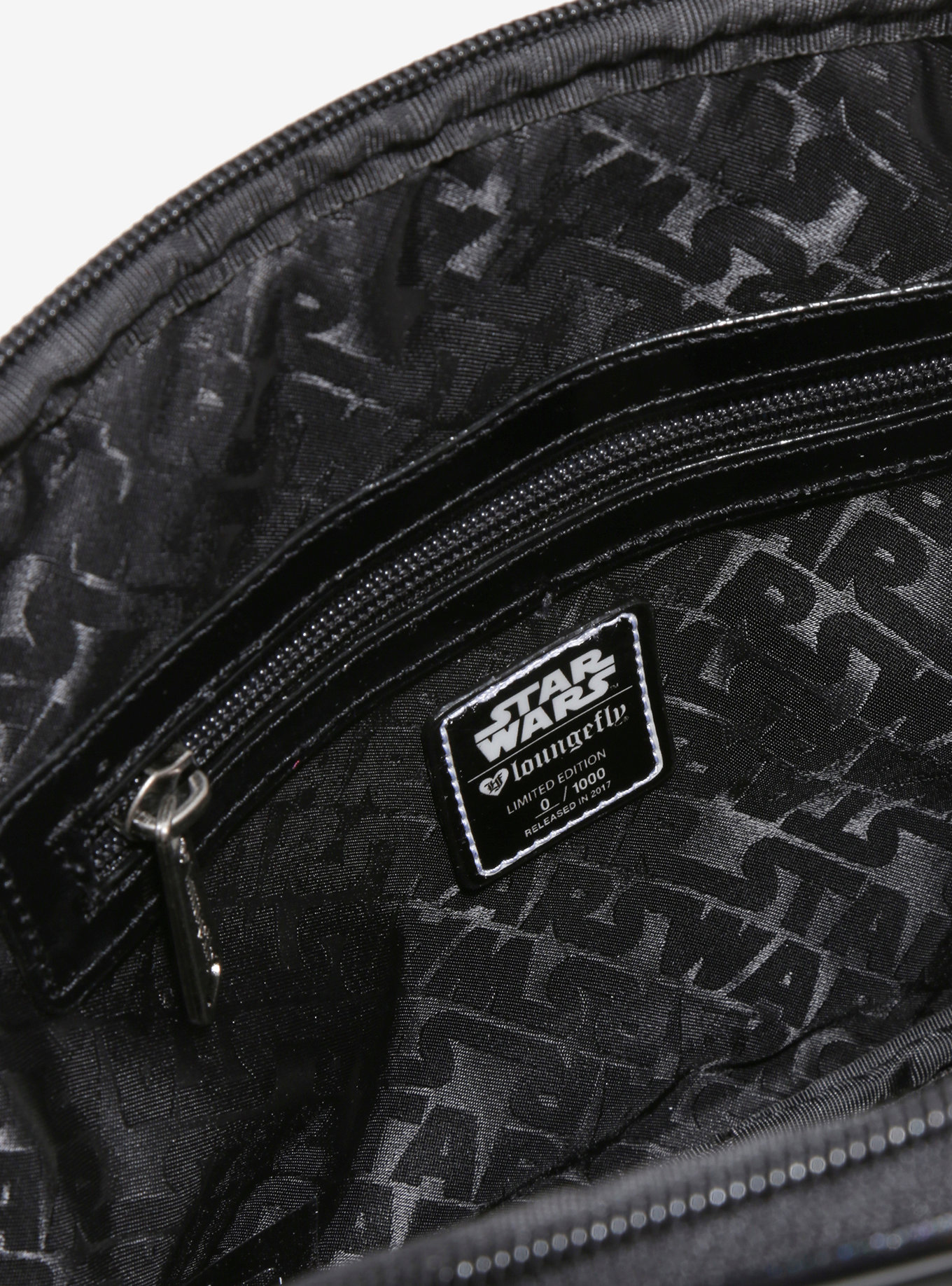 This bag is exclusive to Box Lunch, and (like the earlier Box Lunch exclusive Loungefly R2-R9 handbag) this is a limited edition item! Only 1,000 have been made, and each bag features a numbered plaque inside.