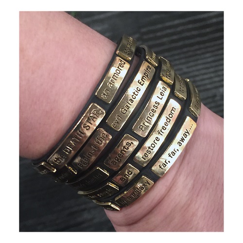 I’ve tried emailing Love And Madness several times about shipping etc, but have never had a response. It’s a little disappointing, as they seem very active on social media. I love their range, but it’s frustrating finding a new brand you want to *buy all the things* from, but they don’t ship to your country. In any case, while this specific bracelet design is a limited run, there will be different colour combinations available in the future (silver/grey and rose gold/charcoal). Also, they plan to release one for each movie, featuring that film’s opening crawl, so you can collect them all!