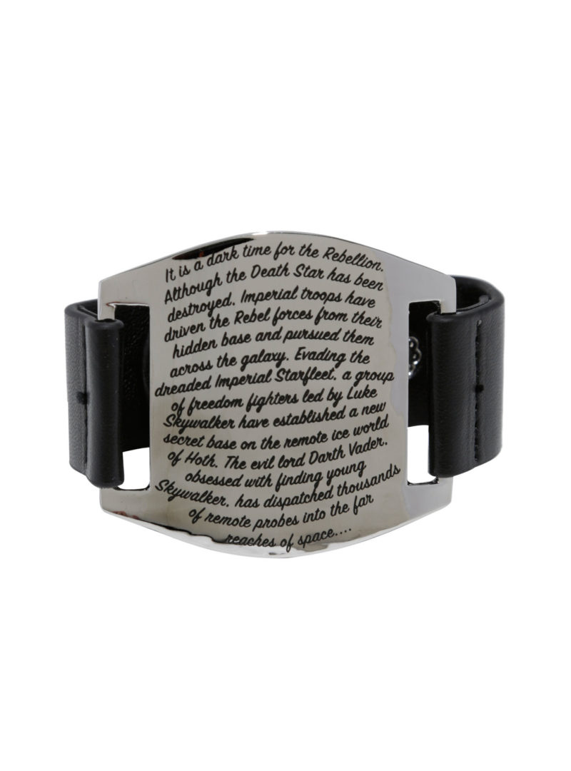 It is a dark time for the Rebellion, but it’s a good time for fashion. Accessorize your best Star Wars outfit with a plate cuff bracelet engraved with the opening crawl from The Empire Strikes Back. May the Force be with you.