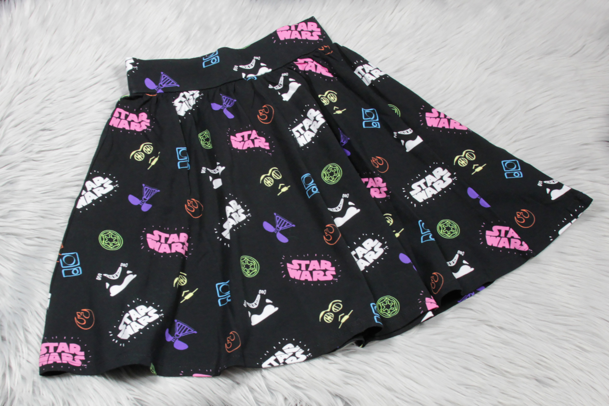 Today’s mail call features the funky Star Wars 80’s print shirt and skirt from Cakeworthy. I have been a long-time fan of Cakeworthy, and already have a few pieces from their Star Wars apparel range. When I saw this fun 80’s inspired print, I grabbed them straight away – something different to add a fun retro pop of colour to my Star Wars wardrobe.