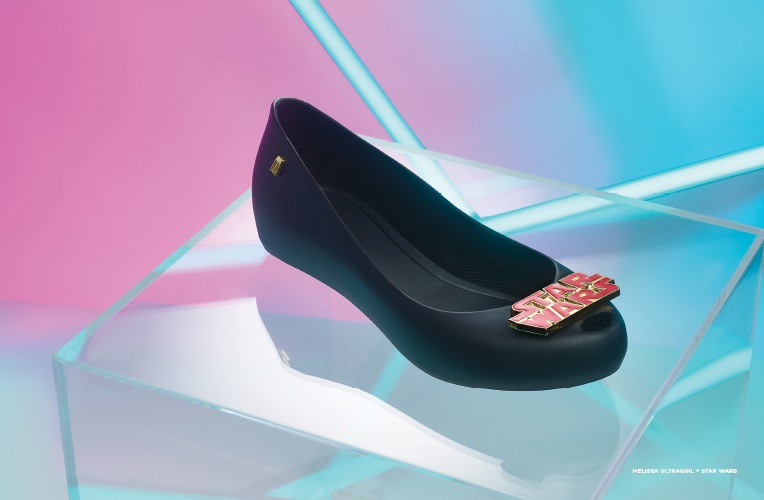 Based in Brazil, footwear company Melissa launched a collection of women’s Star Wars shoes early last year. I hate missing exciting Star Wars fashion news – but it can be hard to keep up with all the new releases from companies around the world. The licensed Star Wars women’s pvc flats were released along side a collection titled ‘Starwalker’ – a collaboration between Melissa and a range of designers (including Karl Lagerfeld and Vivienne Westwood) to create a collection of Star Wars inspired shoes. While it was hard to see the inspiration for some of the Starwalker collection (I felt the Karl Lagerfeld ‘Soldier’ boots were the closest, with a Stormtrooper inspired design), I love the licensed flats! From what I can find, there were three colours of women’s Star Wars logo flats (white, black, purple) and also black flats featuring Darth Vader. These are something that should be available year-round and world-wide! The Star Wars logo flats are priced at R$140.00 – approximately US$36.71.