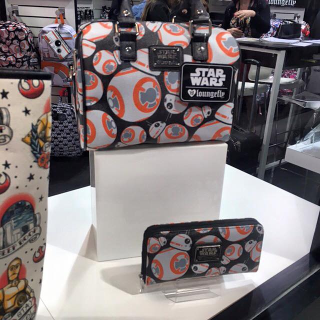 The fashion trade show WWDMagic recently took place in the US, and Loungefly has released a few sneak peaks of some of their new upcoming Star Wars items! Following on from earlier preview photos (see them here and here), come three more photos! The first photo shows a new tote bag and matching wallet with classic Marvel era artwork of R2-D2. I haven’t been able to identify the source of the tote bag artwork (possibly by Howard Chaykin), while the wallet features artwork from a ‘Star Wars Super Stakes’ advert in issue #31 ‘Return to Tatooine’. The second photo has a clearer view of the new BB-8 print handbag and matching wallet (the handbag could be seen in this earlier photo too), while the third photo has a close up of a new handbag featuring a floral ‘sugar skull’ style Darth Vader and Stormtrooper print (also seen in the back of the first photo). I am loving these new designs – my favourites are the classic comic art R2-D2 items, I love the colours!
