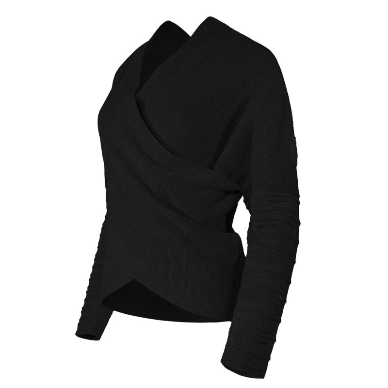 Stay warm and fashionable in sophisticated style with this super soft, lightweight cardigan by Musterbrand. Inspired by Kylo Ren’s outfit in Star Wars: The Force Awakens, it has an asymmetrical front, a Knights of Ren badge, and fitted silhouette.