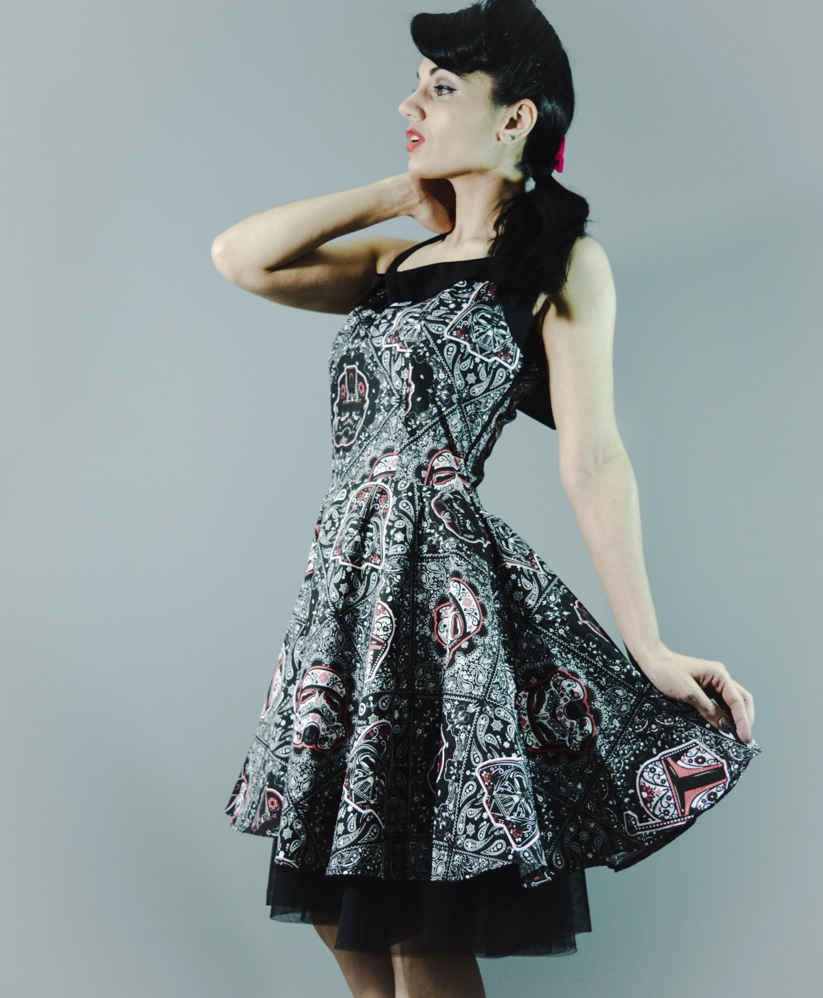 UK label My Odd Girl has a mini-collection of Star Wars dresses available for pre-order! While the brand started with upcycled clothing from licensed tees and fabrics, they have recently expanded into creating original designs like this Star Wars collection. The dresses are priced at £42.99 to £59.99 each (depending on style), with sizes ranging from women’s UK 8/10 to 16/18. There are three styles in the collection – my favourite is the Day of the Dead dress – I love the print and style! The other two dresses feature a black and white Star Wars starship print. All of these dresses are currently available for pre-order – the deadline for ordering is March 31st, with the dresses expected to ship in April (though I see this is described as an initial run, so hopefully they will make more). The checkout form accepts international billing addresses, but appears to only allow UK shipping addresses – I really hope they offer international shipping in the future – I would love to get my hands on these!