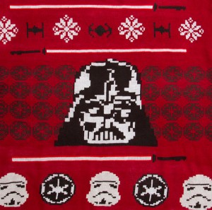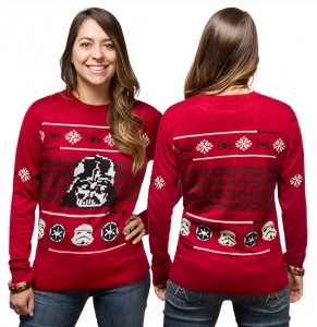Thinkgeek has some new Star Wars apparel available. The first is the popular Jedi cowl dress, made by We Love Fine. Priced at US$39.99 each, the dress is available in sizes S to 3X. The other new arrivals are Star Wars Christmas sweaters, with two styles exclusive to Thinkgeek – Darth Vader/red, and Stormtrooper/green. Priced at US$49.99 each, the sweaters are available in sizes S to 3X – but I believe this may be unisex sizing, so check the measurement chart. Thinkgeek can ship internationally, which is great.