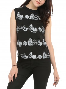 Hot Topic has added three more women’s Star Wars items to their website. The first is a black pullover top that features Darth Vader on the front, and the Star Wars logo on the sleeves (‘Star’ on one sleeve, ‘Wars’ on the other). Available in sizes S to XL, the pullover top is priced at US$32.50 each. The second new item is a black muscle cut syle tank top with a character stencil repeating print on the front. Available in sizes S to XL, the tank top is priced at US$24.50. Following on from the recent Stormtrooper hair brush is a matching Darth Vader hair brush, priced at US$8.50 each. Hot Topic has frequent sales – today only get get 30% off on-line with the code ‘TAKETHIRTY’ – they can ship internationally.