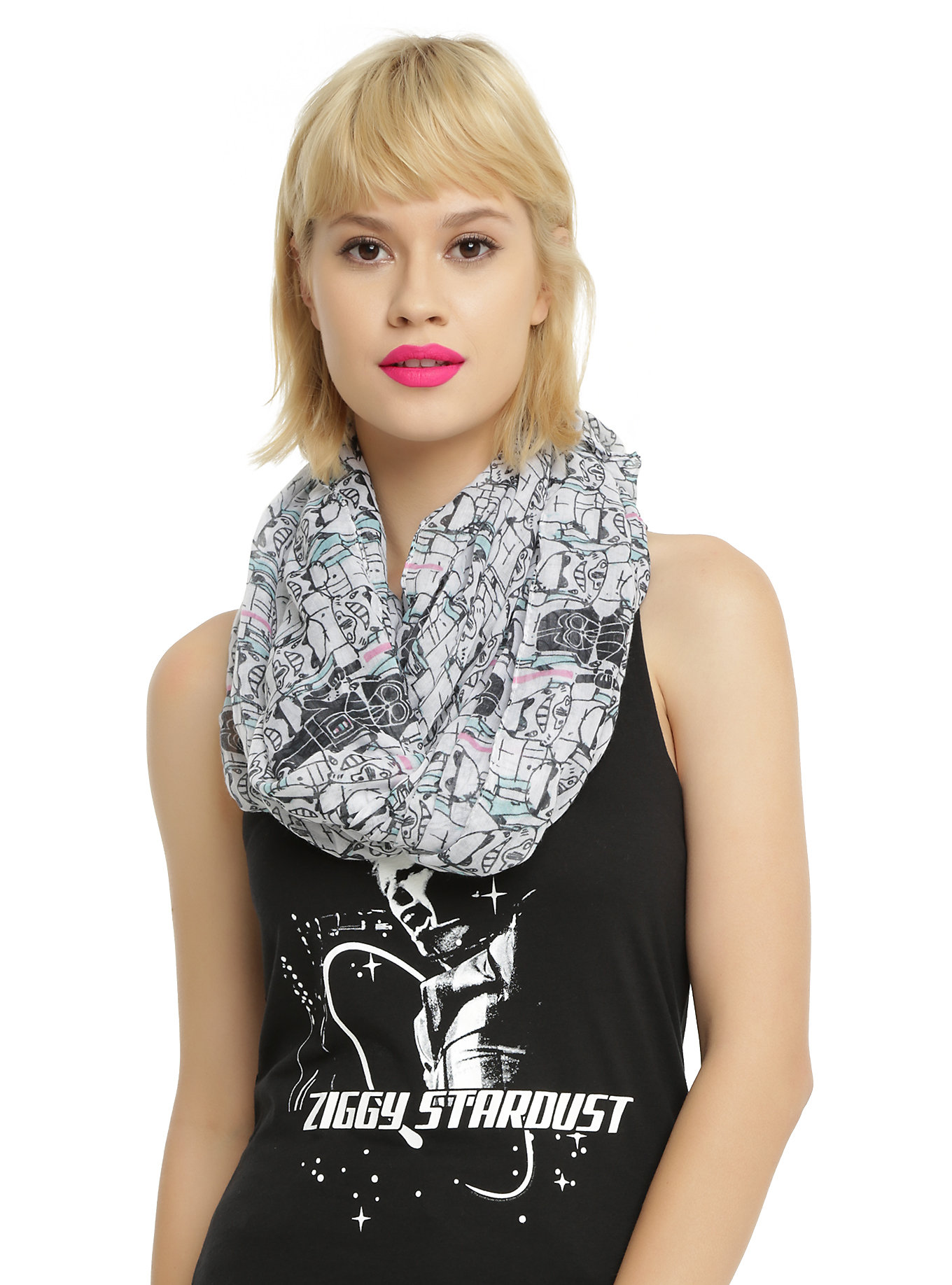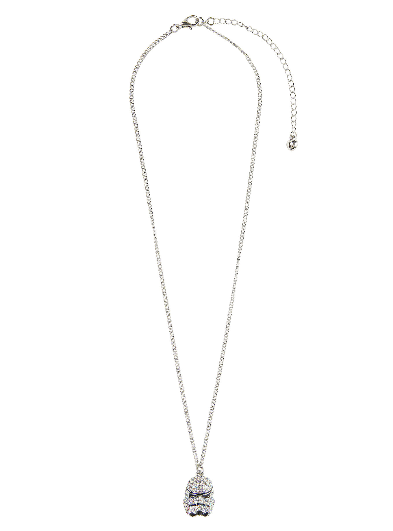 Hot Topic has several new women’s Star Wars accessories now available. There are two new ‘bling’ necklaces, priced at US$12.50 each – one features a Stormtrooper helmet pendant with rhinestones, the other features two pendants – C-3PO and a heart, with rhinestone details. There is a new women’s Star Wars infinity scarf, which features the repeating Darth Vader and Stormtrooper ‘sketch’ style print – it is priced at US$16.50 each. Lastly, there is a new R2-D2 belt, priced at US$14.50 each – though there is no length given for each size, so I can’t be sure if this is women’s or men’s/unisex sizing. Hot Topic currently has 30% off today, so all these prices are discounted further – they can ship internationally.