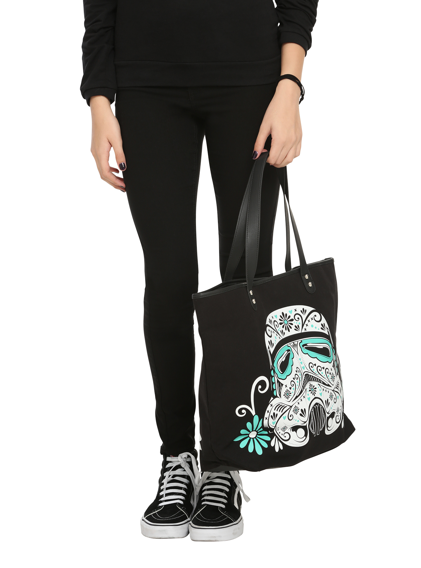 Hot Topic has added several new women’s Star Wars items to their website, including pyjama pants, a tank top, a tote bag and necklaces. The women’s gray pyjama pants are reversible – with the text ‘Star Wars’ printed on the outside, and an all-over character print on the inside. Available in sizes S to XL, the pants are priced at US$24.50 each. The long white tank top features a sketch style print of R2-D2 on the front, very similar to an earlier top from Forever 21 (but without any print on the back). Available in sizes S to XL, the tank top is priced at US$24.50. The tote bag is made by Loungefly, which features a sugar skull style Darth Vader on one side, and a similar style Stormtrooper on the other – it’s priced at US$39.50. The R2-D2 and C-3PO necklaces are sold as pair, priced at US$10.50, while the silver-tone Darth Vader necklace is priced at US$6.50. Hot Topic has frequent on-line sales (there is 20% off today), so it’s easy to pick these up for less than the original retail price – they can ship internationally.