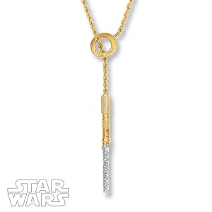 - 10K yellow gold lightsaber necklace with diamond accents – US$449.00 each