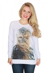 - Snowy Chewbacca scoop neck sweatshirt by Her Universe – US$39.99 (sizes S to 3X)