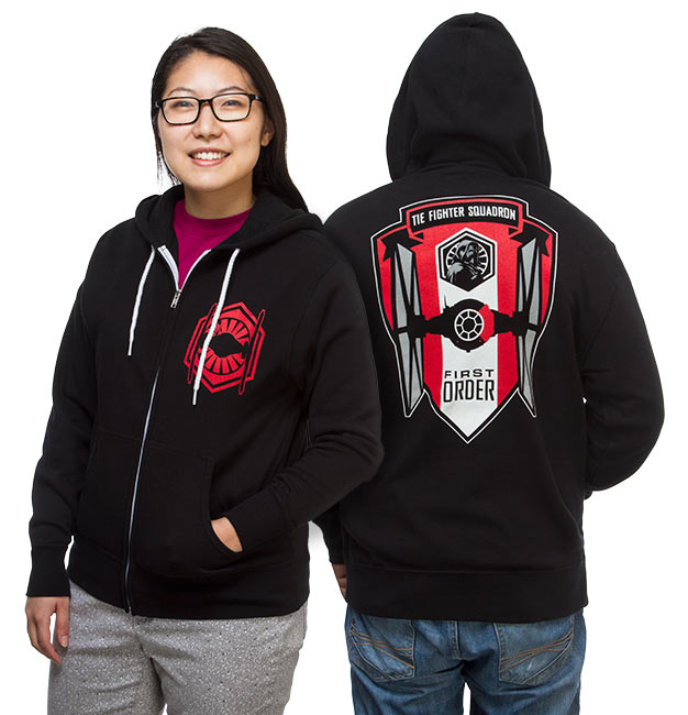 - TIE Fighter Squadron unisex hoodie – US$49.99 (sizes S to L, 2X, 3X – XL is not in stock yet)