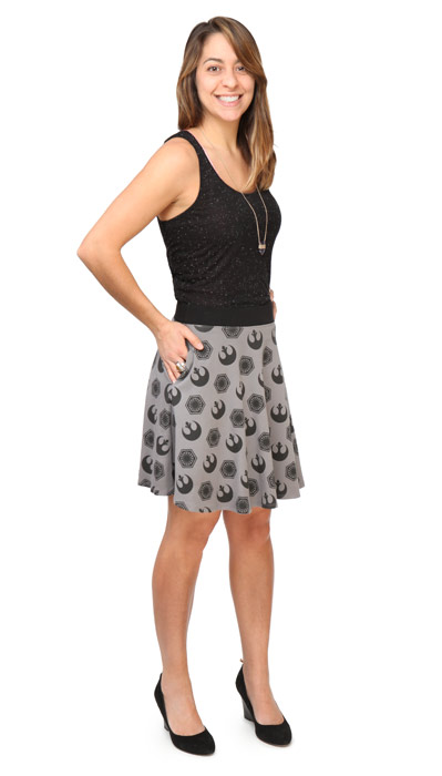 - Women’s The Force Awakens logo skirt – US$39.99 each – sizes S to 3X