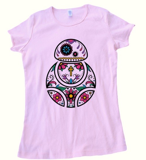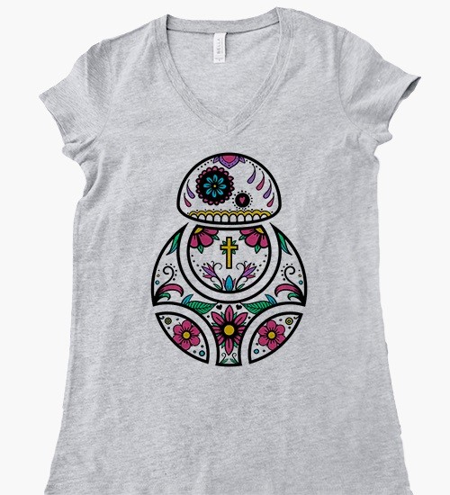 Fan label Beep Boop Beep Clothing has a new Star Wars t-shirt design available in women’s styles. The new design features BB-8 with sugar skull style decoration, and is available on two styles of women’s t-shirts – grey v-neck tee, or pink crew neck tee. I just love the colourful decorations – I can’t decide which tee version I like best!